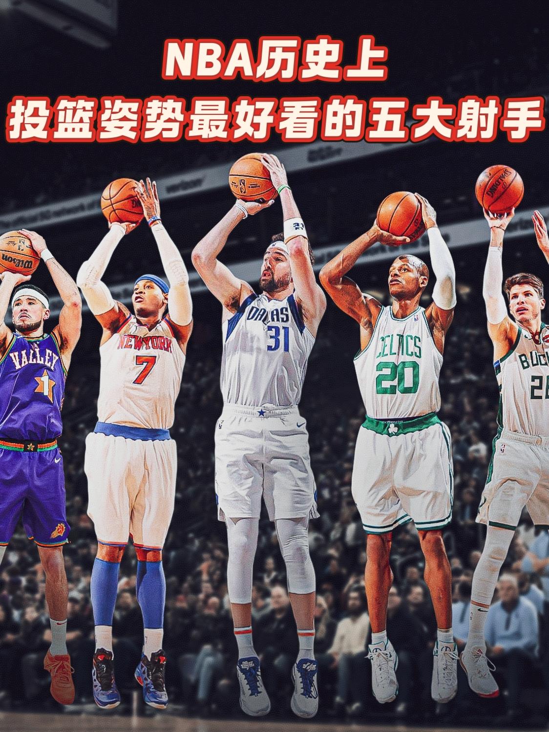 这就是NBA历史上投篮姿势最好看的五大射手! 1, 雷阿伦 投篮姿势最迅速的射手 2, 安东尼 投篮姿势最漂亮的射手 3, 汤普森 投篮姿势最标准的射手 4, 科沃尔 投篮姿势最流畅的射手 5, 布 克 投篮姿势最丝滑的射手 当然了,除了这五位射手,联盟也不乏姿势漂亮的得分手,比如金鸡独立的诺维斯基,比如改变时代的史帝芬库里,比如投篮极具艺术感的中投王阿兰休斯顿,再比如德罗赞、欧文等等!每个时代,都有属于他们的最佳射手,那么在你心中,投篮最好看的球员是哪个?我们评论区见!