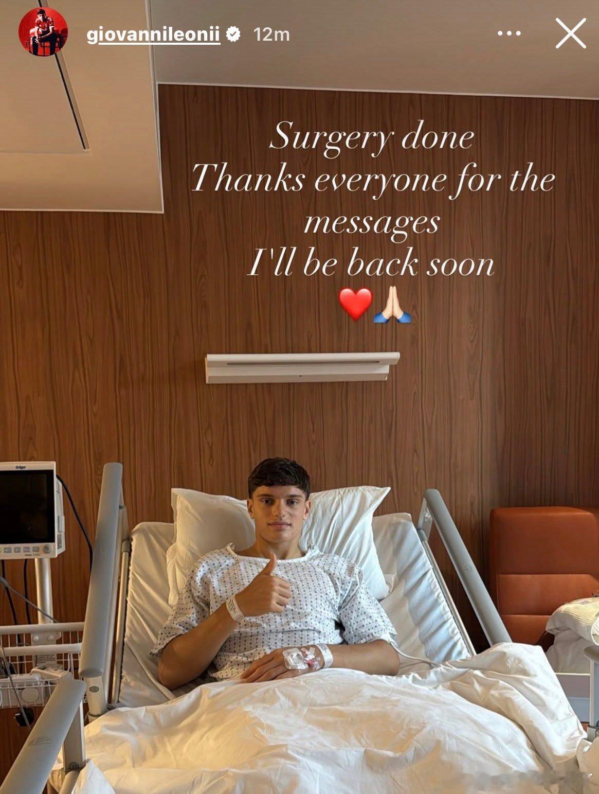 莱奥尼手术成功了 尽快康复回归吧