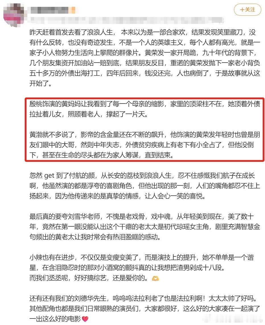 黄渤殷桃生活流演技造浪吧国庆档 看他俩演戏像看真实生活!黄渤把父亲的倔强与温柔揉进动作里,给家人递东西时的小心、说话时的语气起伏,全是生活质感;殷桃用泛红的眼眶和轻颤的指尖藏情绪,母爱里的隐忍太真实。