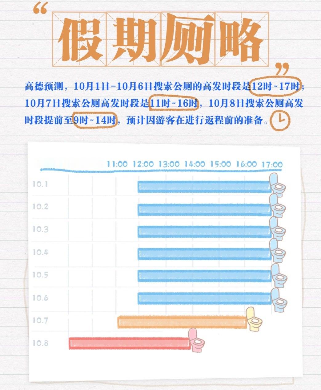 不知道大家有没有过这种经历,出游在外,一搜地图发现厕所就在附近50米的救赎感。这次国庆旅游需求爆棚,从厕所繁忙指标也能反映出一个城市的旅游热度,今年国庆,成都继美食,景点频频出圈后,厕所也火爆出圈,成为全国最繁忙的厕所。不过这些还是在高德地图的控制之中,找厕所还是小菜一碟。国庆成都厕所最忙