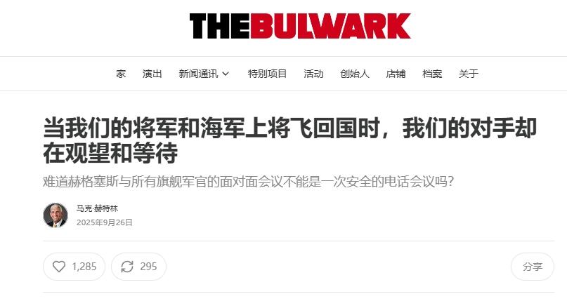 美军前司令吐槽:他从军40年没见过这么离谱的…… 当美国媒体曝出赫格塞思大动干戈地将800多名将军紧急召回国,可能只是为了发表一篇“激励”演讲后,一些美军退役将领终于绷不住了。 当地时间 25 号,美国防部长赫格塞思下了道命令,把驻扎在全球数十个国家的 800 多名高级将领全都紧急召回国,这些将领个个都是陆军准将及以上军衔,不少还握着战区指挥权。 紧接着 26 号,美军退役陆军中将、驻欧洲陆军前司令马克・赫特林就发文怒斥赫格塞思,他说自己从军四十年,从来没见过这么离谱的事情,美国的对手们都在看着美军闹笑话。 赫特林在文章里把这事批得一无是处,他嘲讽说,很难想象一群四星上将要听一个小部队领导的训诫,因为赫格塞思自己在军队里最高只做到陆军少校,根本没带过大型作战部队。 赫特林更抨击赫格塞思这道命令是在逼迫美军玩忽职守,因为当时全球局势一点都不太平,俄乌冲突、加沙危机还有加勒比地区的军事行动都在进行中,这些被召回的将领正是负责统筹这些任务的核心力量。让他们放下手头的军务赶回国,前线的指挥衔接很容易出问题。 更让人看不懂的是召回的目的,知情人士透露,这些将军赶回来就为了听赫格塞思一场 30 分钟的演讲,主题还是 “战斗精神” 这种空泛的内容。 要知道现代军事指挥早就实现了数字化,重要指令通过加密视频会议就能传达,根本没必要大费周章把人叫回来。有五角大楼官员形容这事 “就像把马匹赶进马厩再鞭策它们”,完全是形式大于意义。 这场闹剧还藏着巨大的浪费,让这 800 多名将军从全球各地赶回美国,不管是乘坐商业航班还是军用飞机,再加上随行人员的开销,光差旅费用就高达数百万美元。 国防部有官员直言,这些钱本可以用在资助关键军事任务上,现在却花在了一场没必要的演讲上,是对纳税人资金的严重浪费。 而且赫格塞思这么做早有苗头,他上任半年多来,正事没干多少,先是想把 “国防部” 改名叫 “战争部”,又频繁无故解雇高级军官,还在五角大楼建了全是特朗普支持者的加密群组,根本不是在搞军事改革,而是在清理异己。 这次强制召回将军,还设了严格的考勤制度,不准请假缺席,否则可能影响职业生涯,说白了就是一场服从性测试。 最讽刺的是,连美国总统特朗普对这事都没当回事,被问起时说 “没什么大不了”,还明确表示不会出席这场会议。民主党参议员塔米・达克沃思都看不下去了,已经开始在国会传阅信函,要求赫格塞思解释这么做的必要性和安全风险。 在我看来,军队的核心是保家卫国,讲究的是高效和务实,赫格塞思这种把军事体系当政治秀场的做法,只会耗损美军的战斗力。军事指挥不该被个人政治意图裹挟,更不能拿纳税人的钱和前线安危当儿戏。 大家觉得赫格塞思这么做到底是为了立威还是真的不懂军务?这种做法会影响美国的军事部署吗?欢迎在评论区留言讨论!