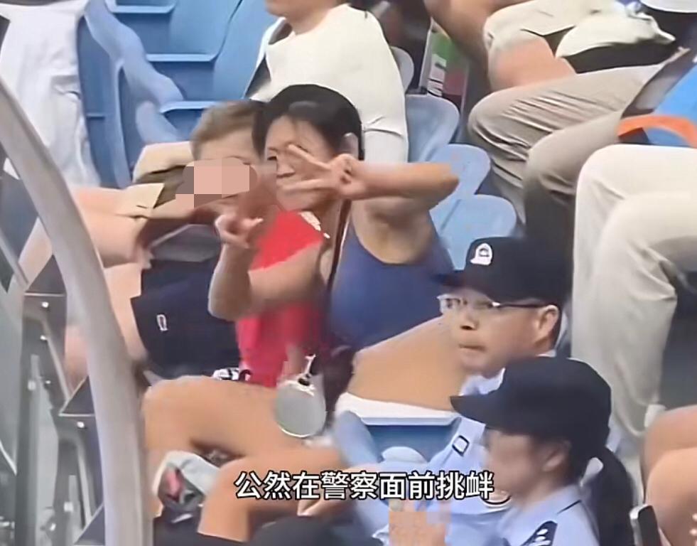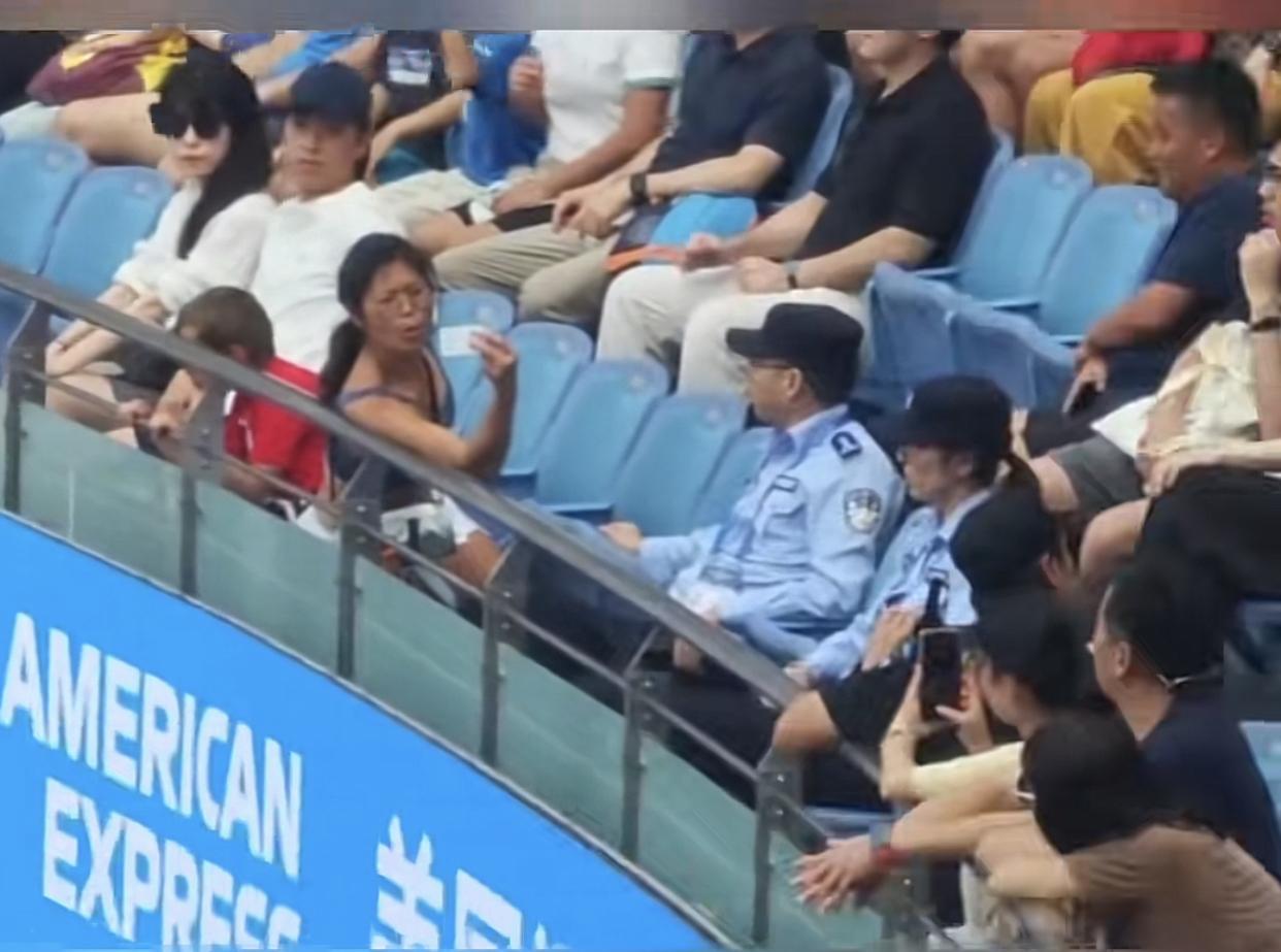 奇葩事天天有! 10月1日上海,旗忠网球大师赛上,一名40多岁,一身网球服的女子在贵宾席上看球!过程中不时大声喧哗,不断尖叫,旁若无人好像整个旗忠网球中心是自家开的,不顾周围观众感受,谁劝也没用。 更让人气炸的是,维护球场秩序的警察到场还从包包里拿出了身份证和一本护照在警察面前扬威耀武在挑衅。几次劝告无果,最后终于在全场欢呼声中,被警察横着抬了出去。 以为自己嫁了个洋人就很了不起,高人一等吗?要知道,这是上海! 不管你来自哪国,这种闹事不听劝阻,公共场合不守规矩的人,不要跟她婆婆妈妈,只要警告不听直接上强制手段。你越劝,她反而是越来劲,上海警察这次也算是耐得住性子了。