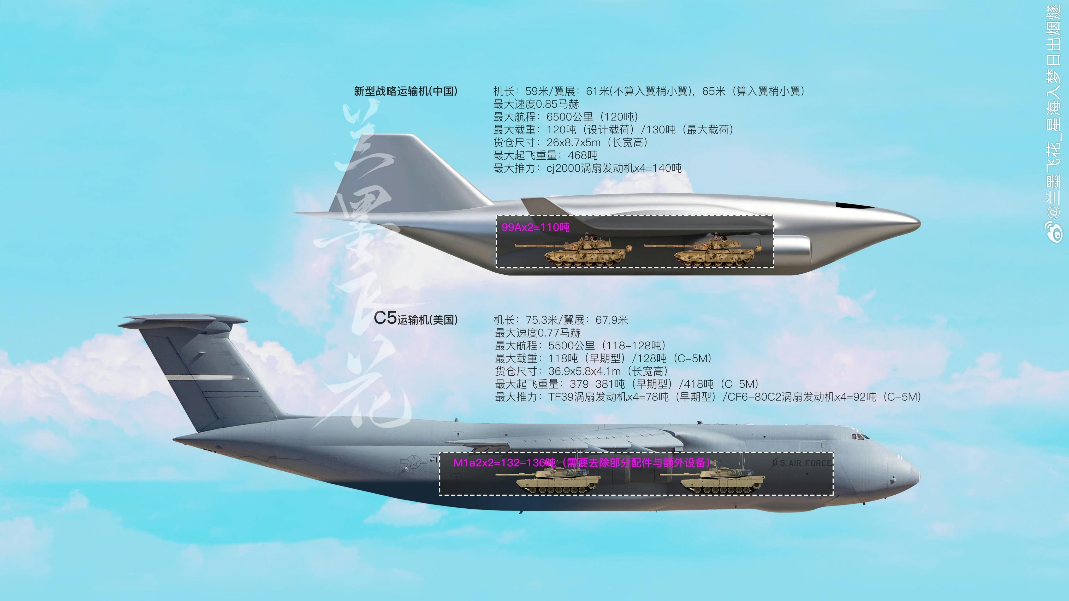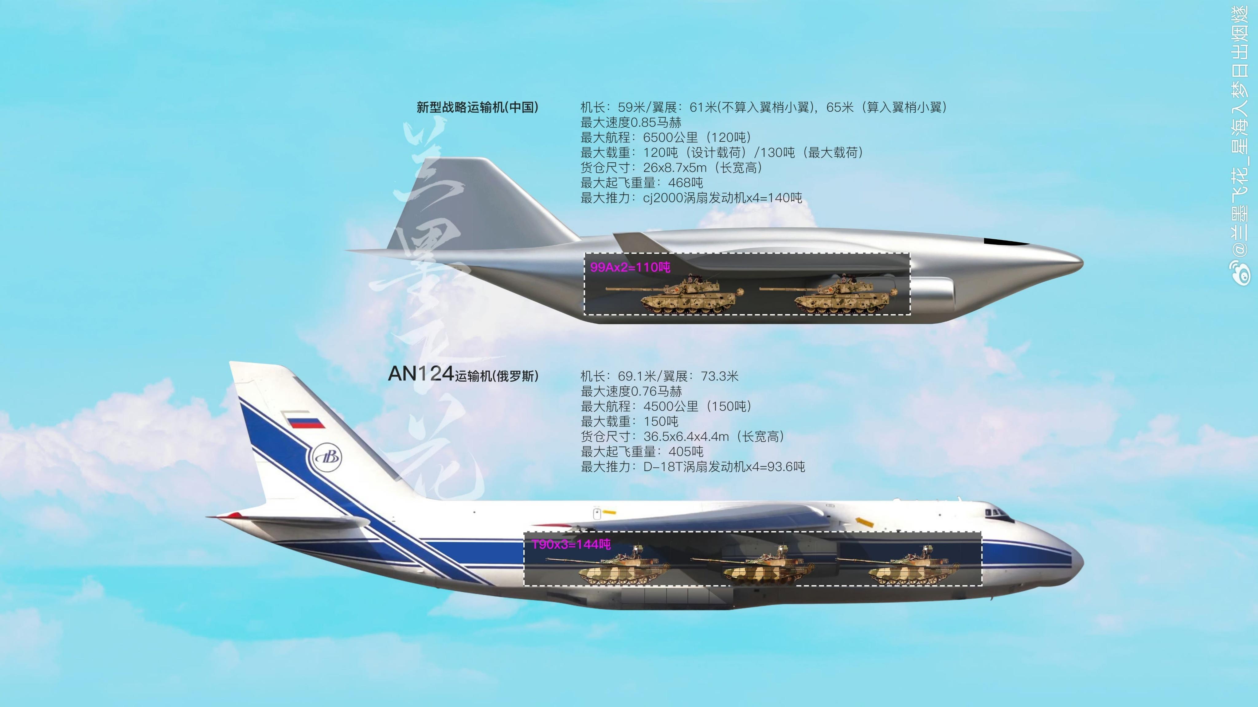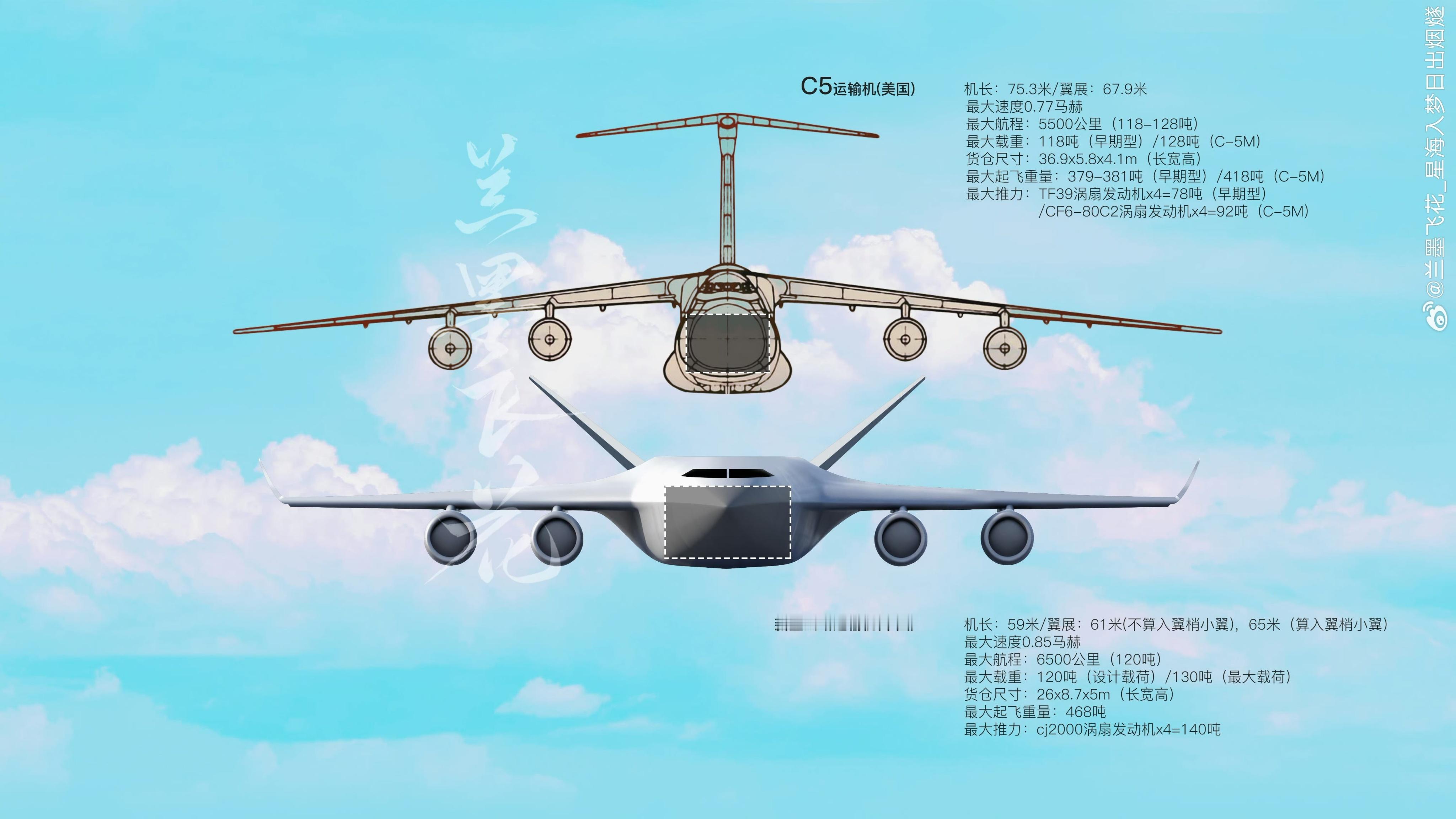涡扇发动机不是35吨的CJ2000,而是25吨的新型大涵道比军用涡扇发动机。按照大型运输机0.22左右的推重比,100吨的推力就可推动最大起飞重量460吨左右的战略运输机起飞了 [并不简单]