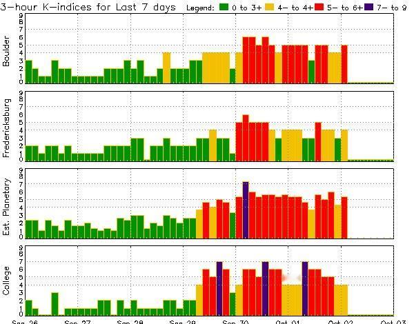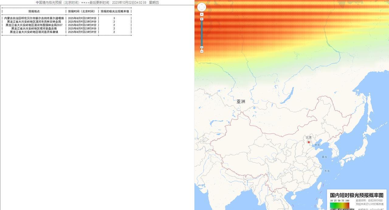 【地磁扰动达到中等地磁暴水平】 【极光事件】 ++++++++++ !![蓝]色警报!! ++++++++++ 北京时间2025年10月2日11时7分,地磁扰动达到中等地磁暴水平,为KP=6,需等待3小时平均值的监测结果,留意中纬度出现极光的可能性。 数据 发布时间:2025年10月02日11时23分48秒