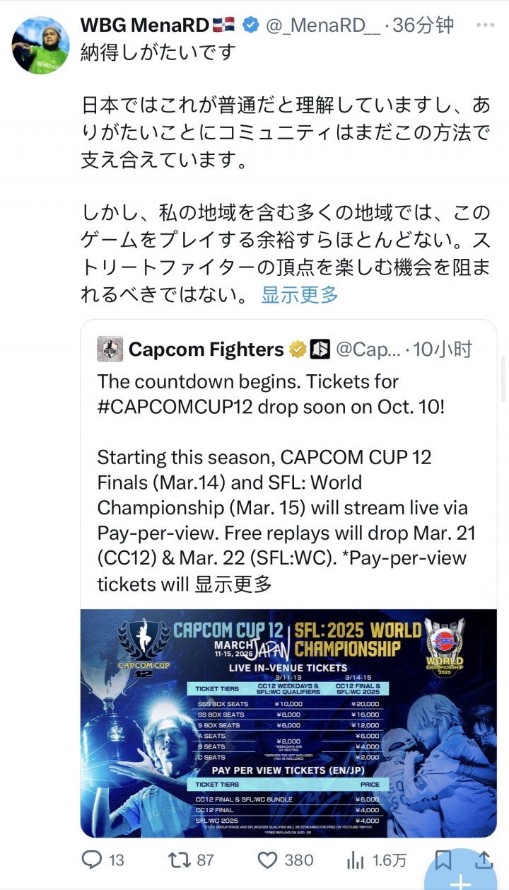 对此,两届卡普空杯冠军猪皇对发表看法:我很难接受,但我明白这在日本很正常,值得庆幸的是社区仍然能够以这种方式互相支持。