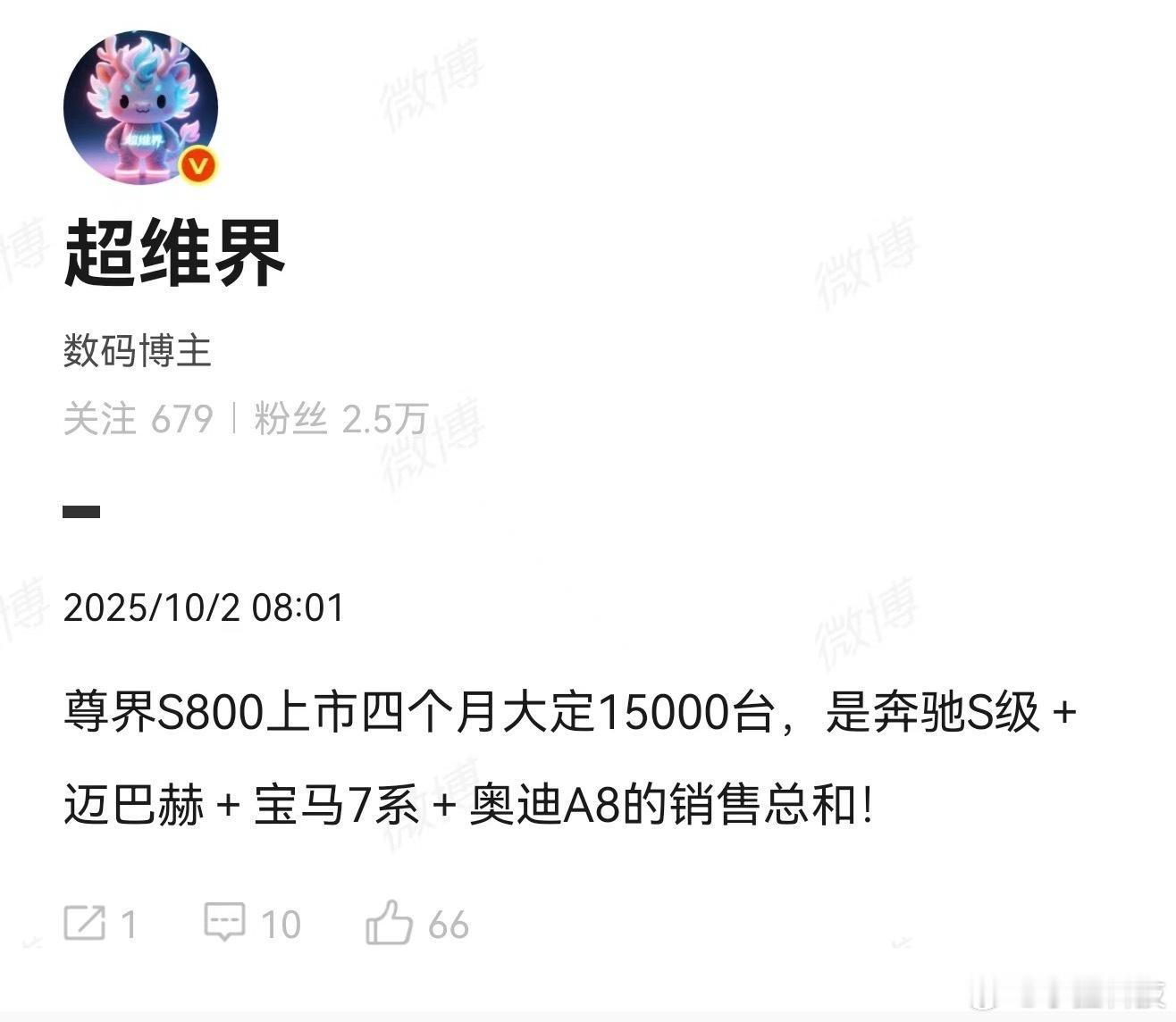 尊界能有这个销量完全不奇怪,华为的品牌力太强了,赚大钱的尊界能卖那么好。当然现在已经不是订单问题,而是是交付问题,估计江淮已经产能拉爆了。