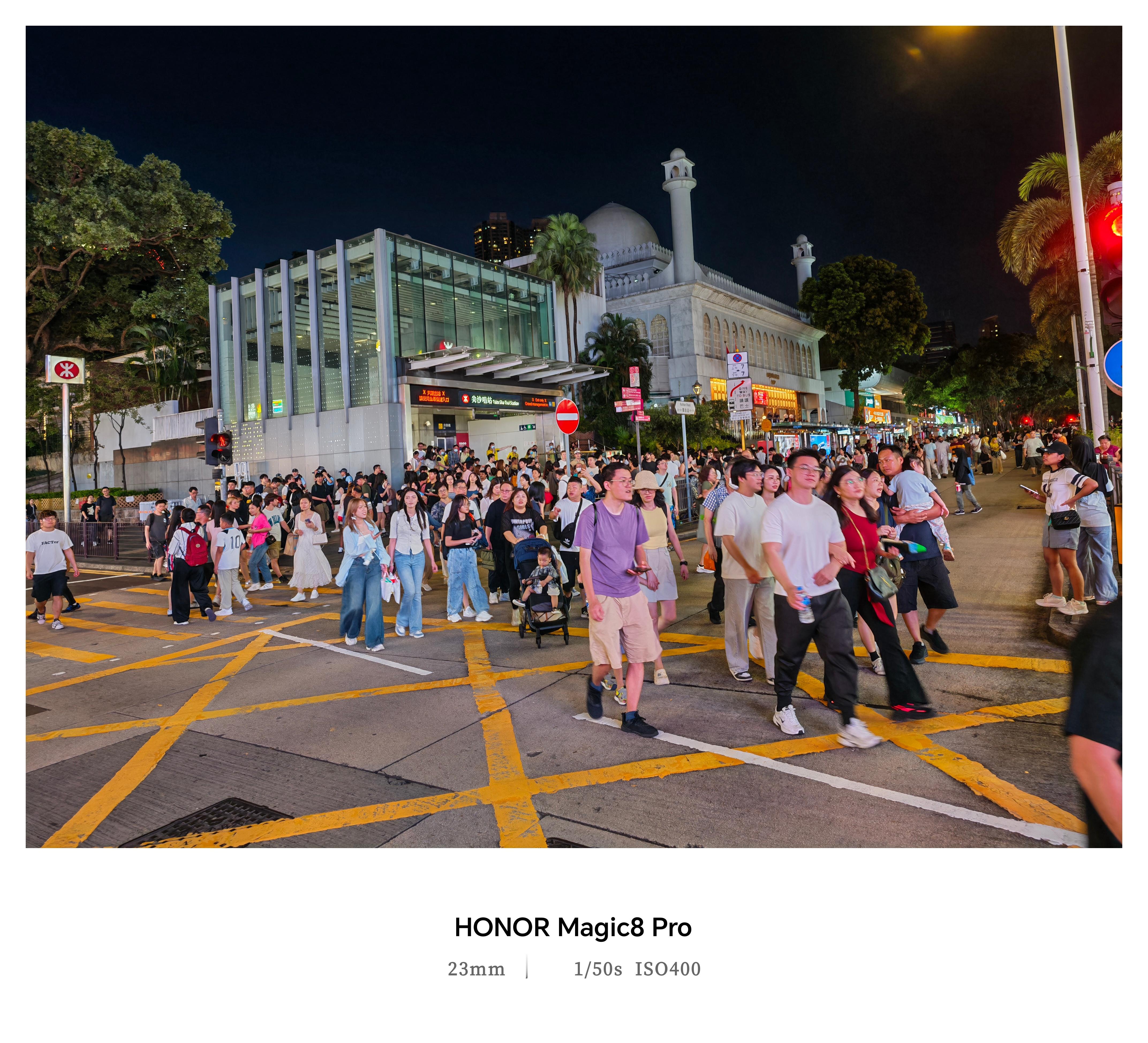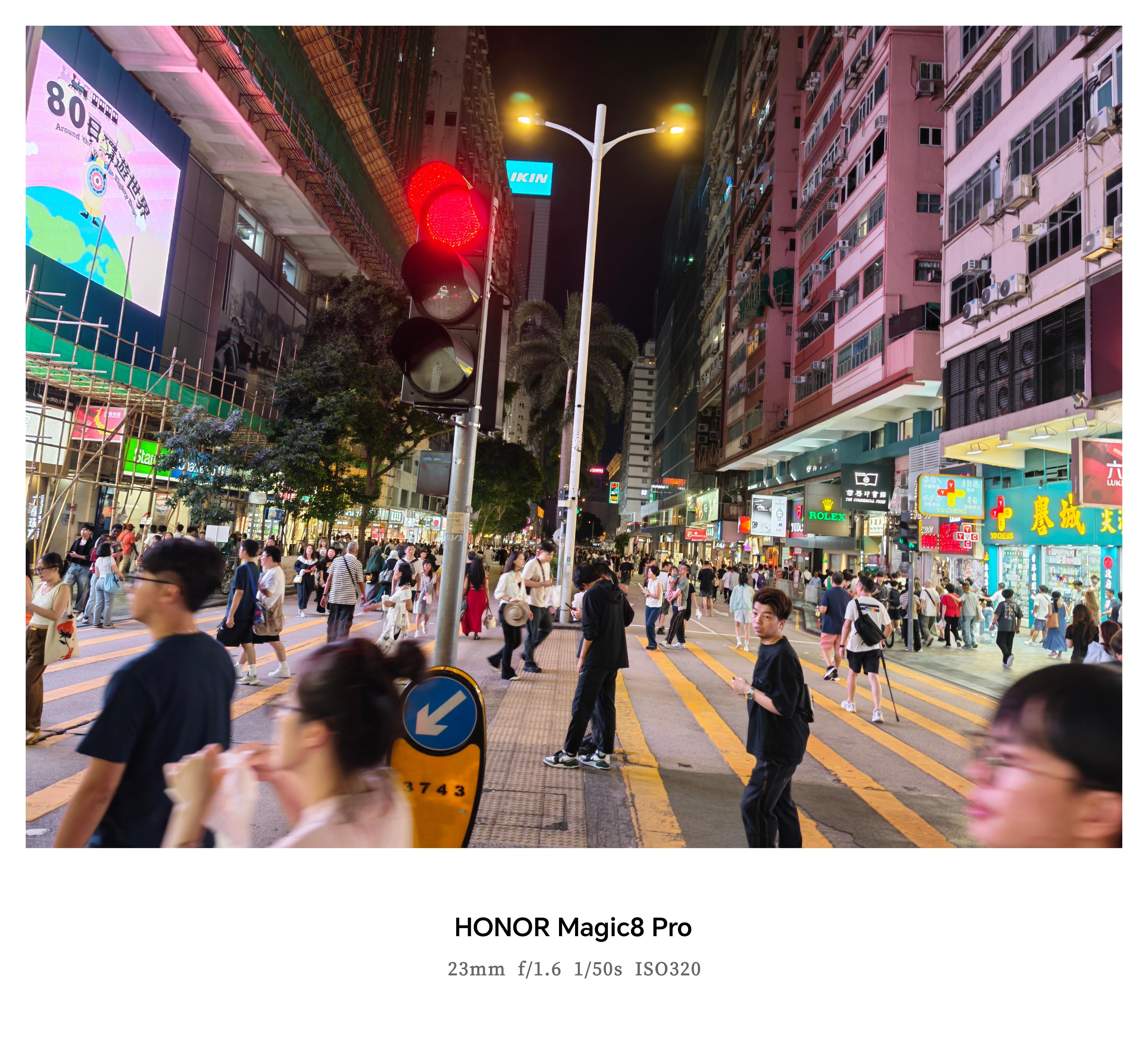 昨天晚上香港尖沙咀附近因为烟花,封路了,所以没有车全是行人,感觉很特别[并不简单]马路上随便走,也不用管红绿灯了。 荣耀Magic8Pro随手拍拍。 荣耀2亿超夜神日落后追光