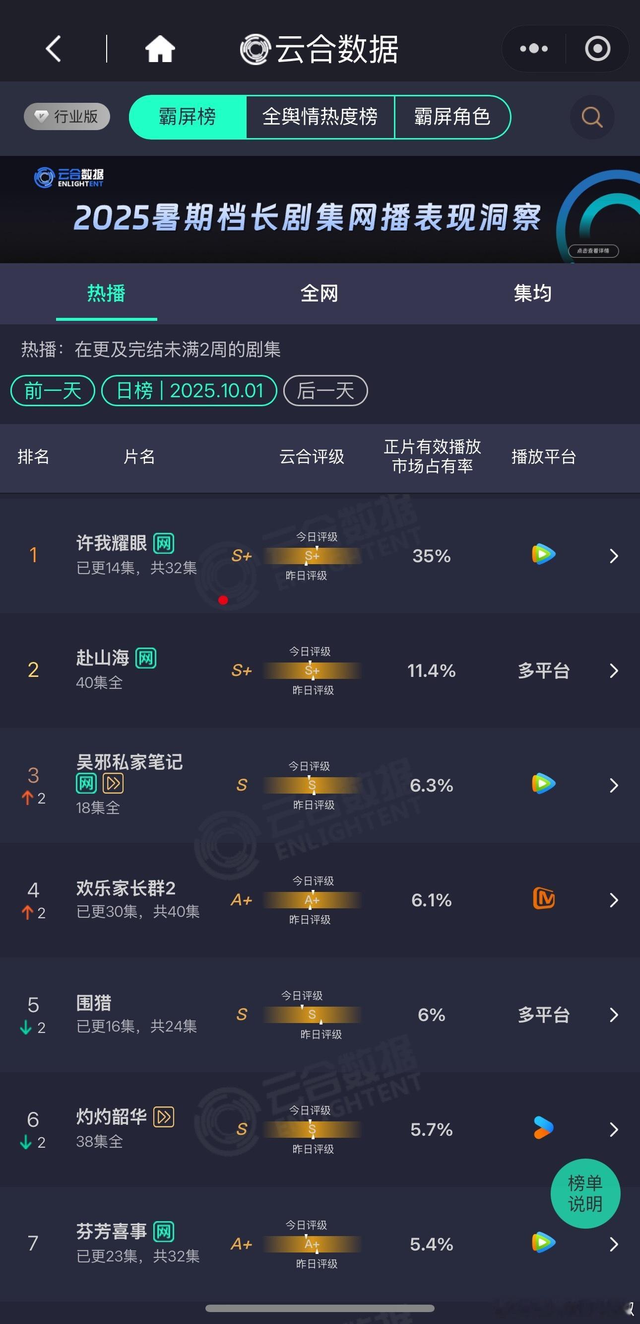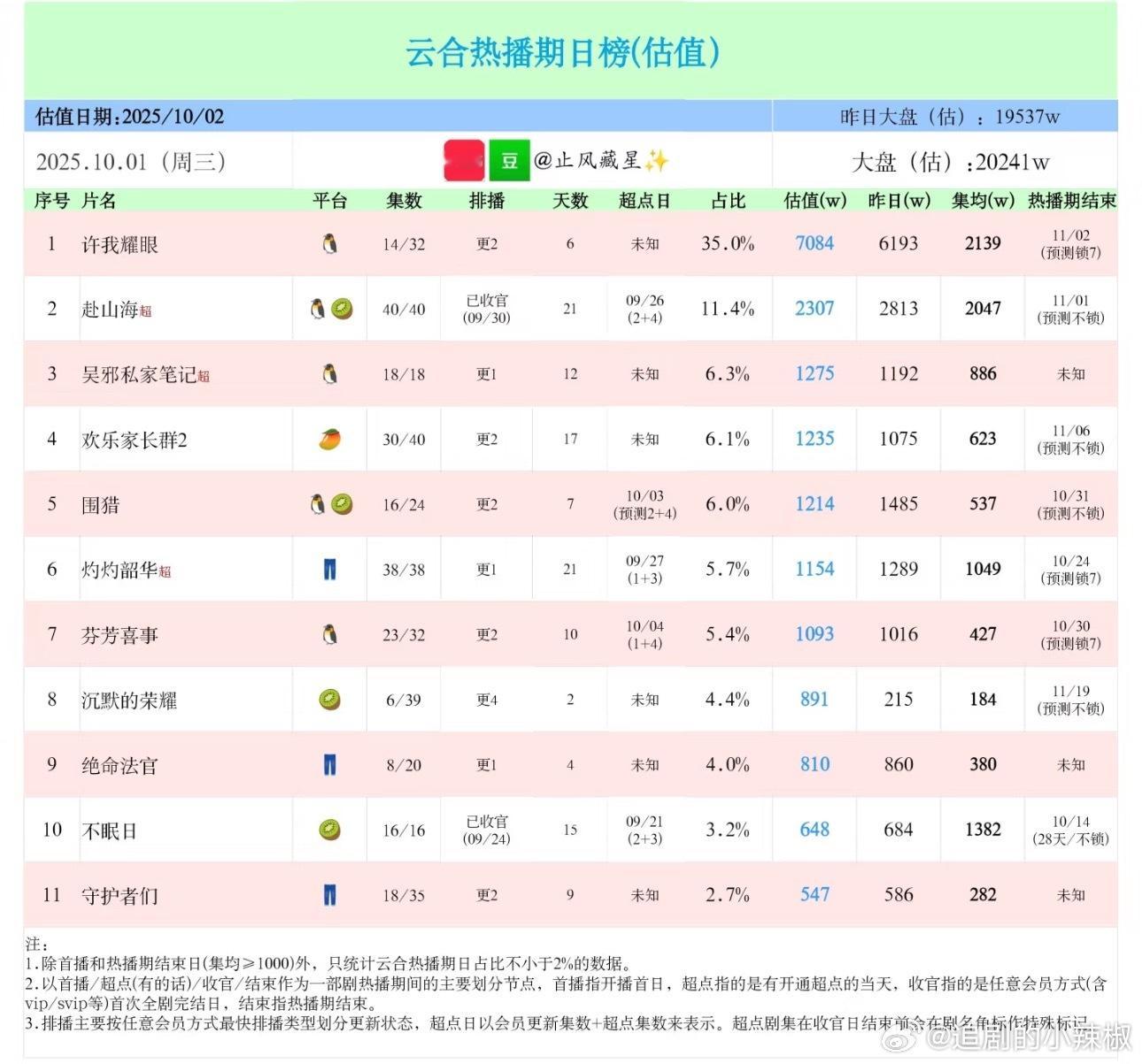 《许我耀眼》最新云合占比首破30%大关,脱水播放量破7000w,真吸干大盘一枝独