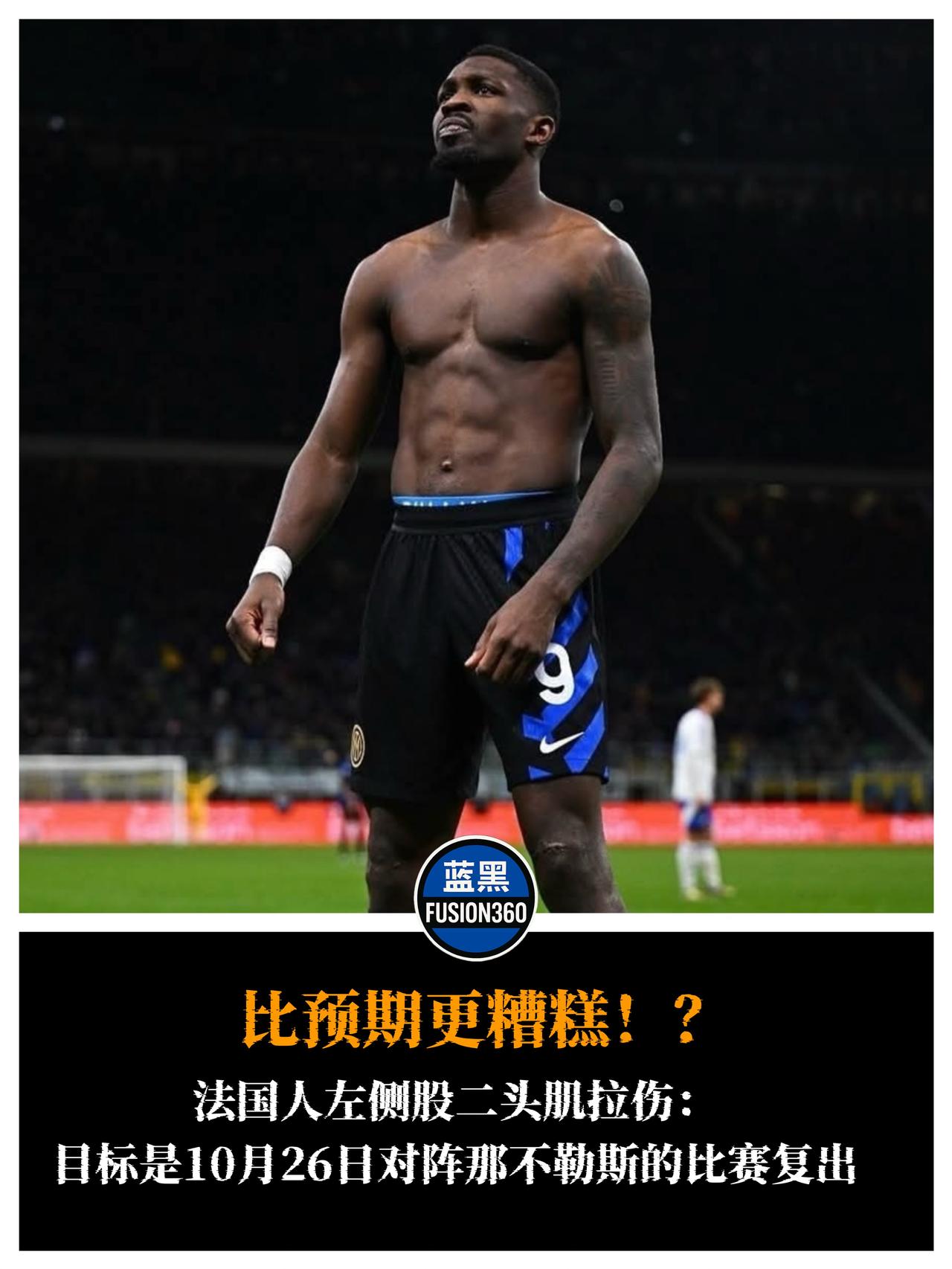 噩耗!图拉姆左腿股二头肌拉伤,或缺阵一个月 国际米兰官方确认:图拉姆今天下午在罗扎诺人文研究所接受检查,结果显示左腿股二头肌拉伤 。 尽管图拉姆在欧冠3-0战胜斯拉维亚布拉格赛后曾告诉球迷”没什么大碍”,但伤情比预期严重,预计将缺阵数周。 他将错过本周末对阵克雷莫内塞的比赛,并无缘法国队的国际比赛日征召 。更糟糕的是,可能缺席10月19日客战罗马和欧冠对阵圣吉卢瓦斯的关键战役。 本赛季图拉姆状态火热,意甲5场3球1助攻,欧冠2场贡献2球1助攻 ,是国米进攻线上的绝对主力。 蓝黑军团的目标是让他在10月26日对阵那不勒斯的关键大战前复出,但这场天王山之战也充满变数。 齐沃又遇难题了!国际米兰 💙🖤