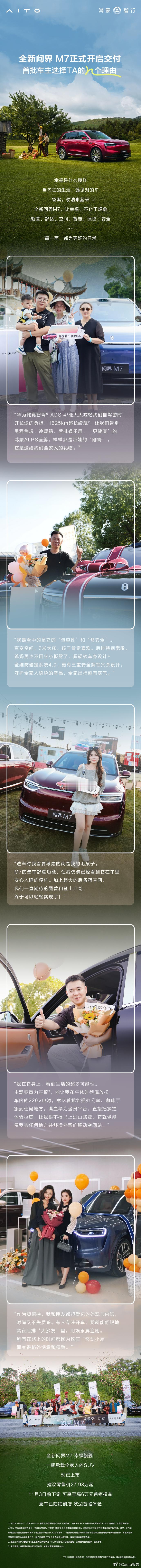 全新问界M7全国多城开启规模交付!问界M7一日大定突破4万台安全卷王问界M7标配八重安全设计