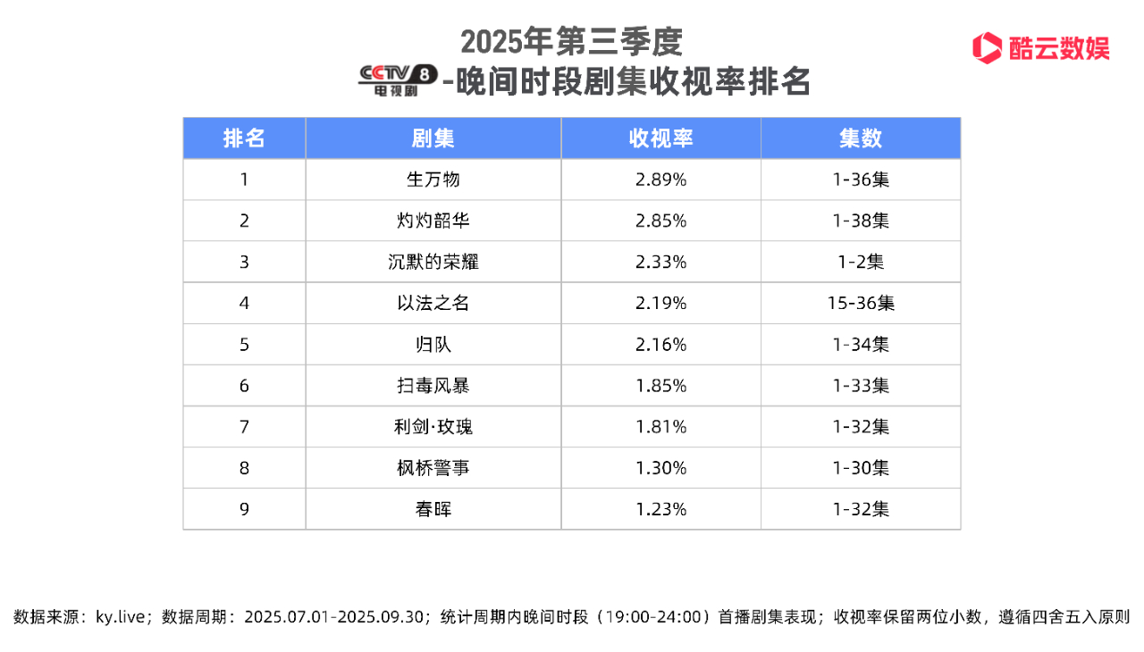 2025年Q3央视剧集收视榜单《生万物》Top1
