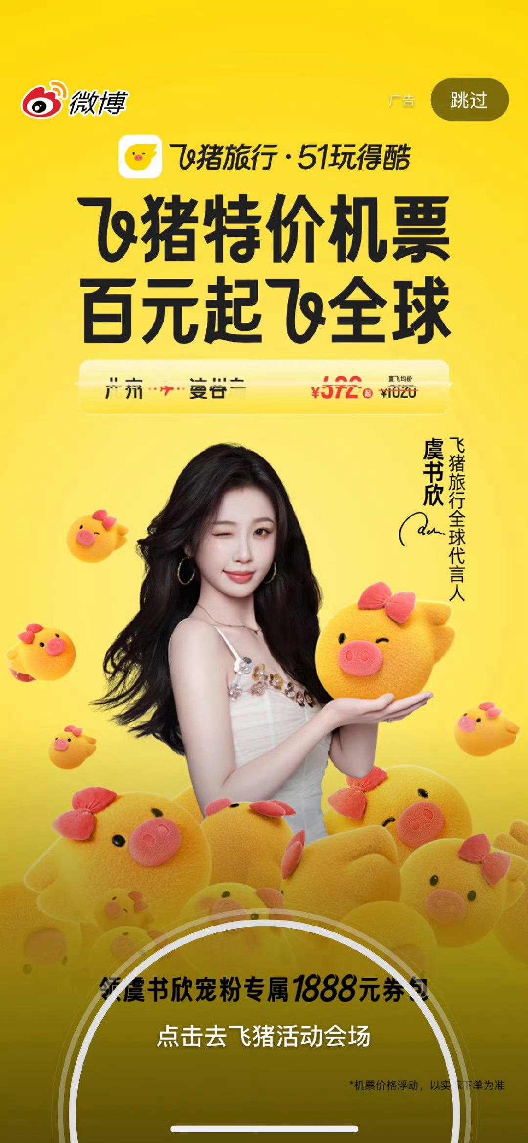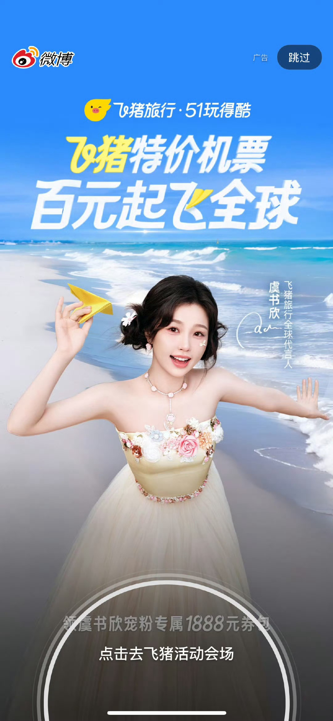 喜欢飞猪给虞书欣的大地广、大开屏、大应援。
