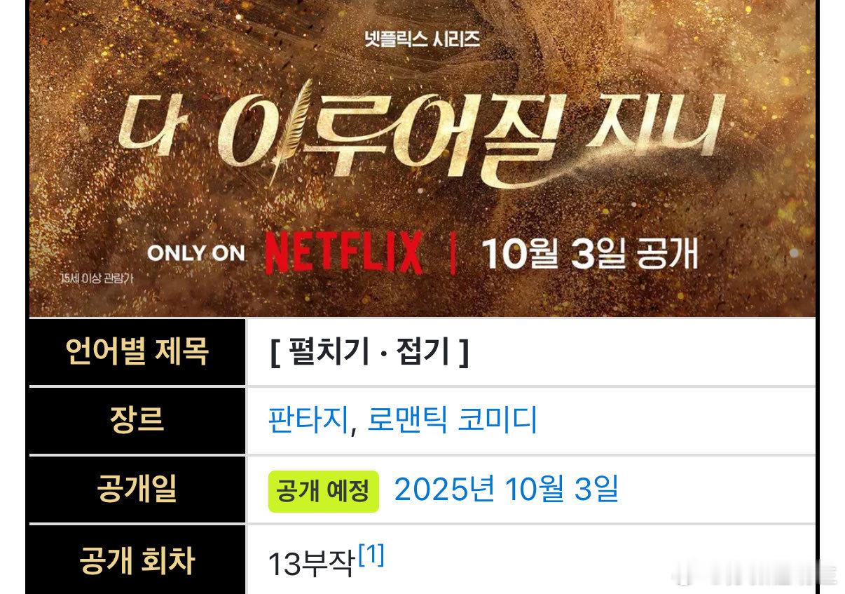 金宇彬秀智主演,金恩淑编剧的网飞《许愿吧精灵》10.3一次性公开全集,一共十三集。