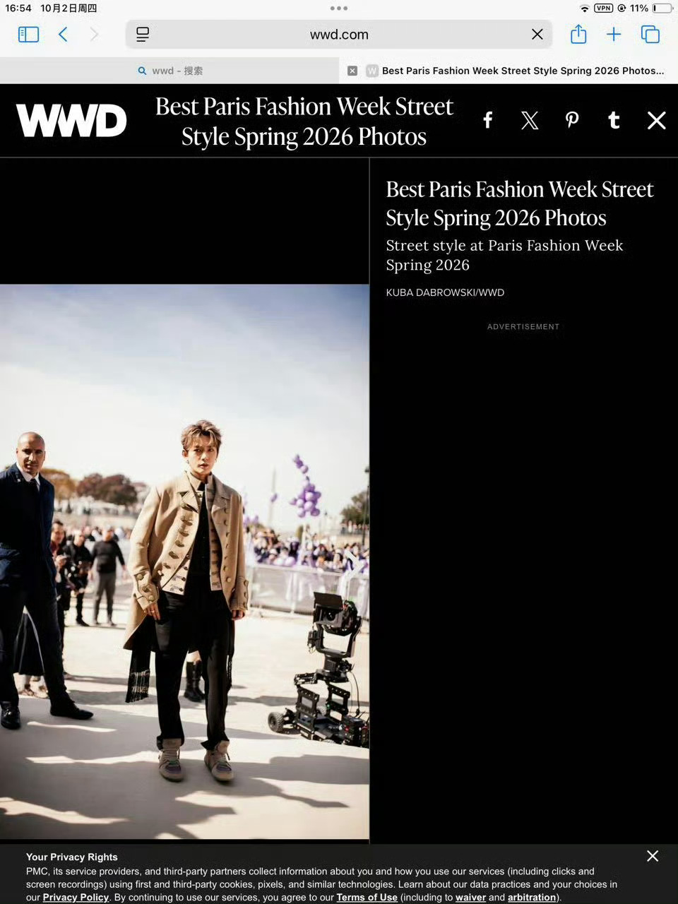 邓为和粉丝被WWD收录为最佳街拍邓为和粉丝成巴黎时装周最佳街拍邓为和粉丝被WWD