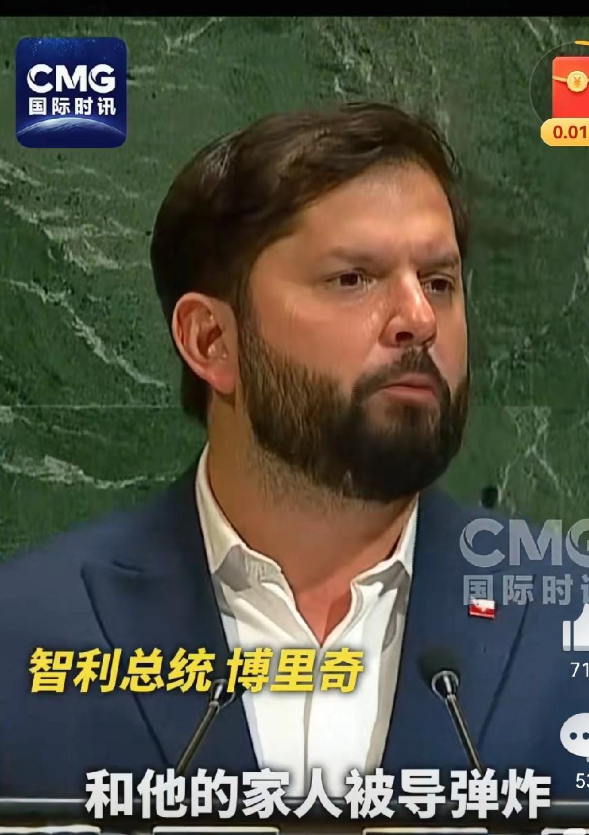 胆子好大哦! 内塔尼亚胡听了心里会发慌,这可是联合国大会上响彻全球的声音,确实够响亮,甚至说有点振聋发聩了。 事情发生在2025年9月的联合国大会上。 大会如期在纽约举行,按惯例,各国领导人轮流上台发言。 大多数人都会讲些常规的内容,比如自己国家的成就、对国际问题的看法,或者喊喊合作共赢的口号。 然而,这次大会却因为一位南美洲国家的总统发言而显得格外不寻常。 这位总统就是智利的加夫列尔·博里奇。他的发言引发了不小的震动,直接把以色列总理内塔尼亚胡推上了风口浪尖。 一个南美总统引发的“震动” 事情的起因很简单。当轮到博里奇发言时,他在台上没绕弯子,直接开门见山。 他提到:“长期以来,巴勒斯坦人民的苦难被严重忽视。 尤其是2005年以来,无数巴勒斯坦人因为他们的身份,丧失了生命、家园和一切。这种局面不能再继续下去了。 ”这番话引起了会场的不小反应。 很多人原本低头看文件的,突然抬起头来,想看看这个南美洲国家的领导人到底还会说些什么。 接着,博里奇更是语出惊人。 他点名批评以色列总理内塔尼亚胡,称其对巴勒斯坦问题的政策“必须承担种族灭绝的责任”,并指出,“我不希望任何人遭受战争的直接伤害,包括内塔尼亚胡和他的家人。 但他应该为自己的所作所为负责,被送上国际法庭接受审判。” 这话一出,会场里沉默了几秒钟,接着响起了一阵掌声。 这掌声,既是对博里奇勇气的赞赏,也表明了许多国家对这一问题的共鸣。 博里奇为什么这么敢说? 博里奇的发言之所以引发广泛关注,除了内容直接、态度鲜明以外,还因为他的身份。 智利是一个南美洲国家,和中东相隔万里,按理说并没有直接的利益关系。 那为什么智利总统会在国际场合如此高调地为巴勒斯坦发声?这背后其实有很多原因。 首先,智利是拉美地区巴勒斯坦裔人口最多的国家之一。 据历史记载,20世纪初,许多巴勒斯坦人因为战争和动荡,移民到了南美洲,其中不少人选择了智利定居。 这些巴勒斯坦裔居民经过几代人的发展,已经成为智利社会的重要组成部分。 他们热爱智利,但也始终心系自己的故土。因此,智利政府对巴勒斯坦问题的关注,既是出于国内民意的需要,也体现了南美国家一贯的反殖民主义立场。 其次,博里奇个人的政治立场也很鲜明。 他是一个强调平等、正义和人权的领导人,尤其对国际上存在的不公问题,一向态度鲜明。 他多次在不同场合呼吁国际社会关注巴勒斯坦问题,这次在联合国大会上的发言,只不过是他一贯立场的延续。 内塔尼亚胡会怎么应对? 博里奇的发言,无疑给以色列总理内塔尼亚胡带来了不小的压力。 内塔尼亚胡近年来在国际社会的形象并不算太好,尤其是在巴勒斯坦问题上,他的强硬政策饱受争议。 尽管以色列一直有美国这个“靠山”在国际场合替它说话,但随着国际格局的变化,美国的影响力也不如以往那么强势了。 目前,内塔尼亚胡尚未对博里奇的言论作出具体回应。 不过可以预见的是,以色列方面可能会采取一贯的立场,坚决反对任何对其政策的批评,并试图通过外交手段对智利施压。 参考:每日经济新闻——关于巴勒斯坦问题,联合国安理会举行高级别会议,中方最新表态:必须纠正