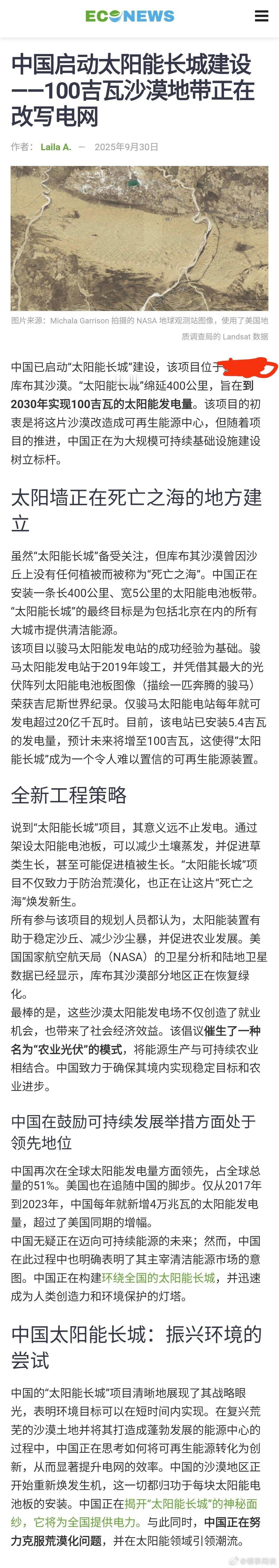 【中国启动太阳能长城建设——100吉瓦沙漠地带正在改写电网】