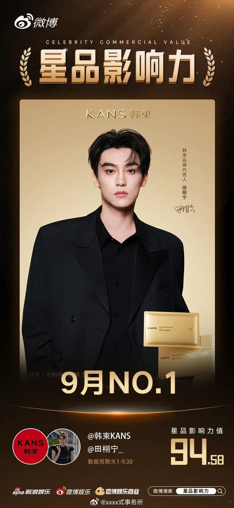 韩束田栩宁拿下9月星品影响力第一,一整个九月的第一