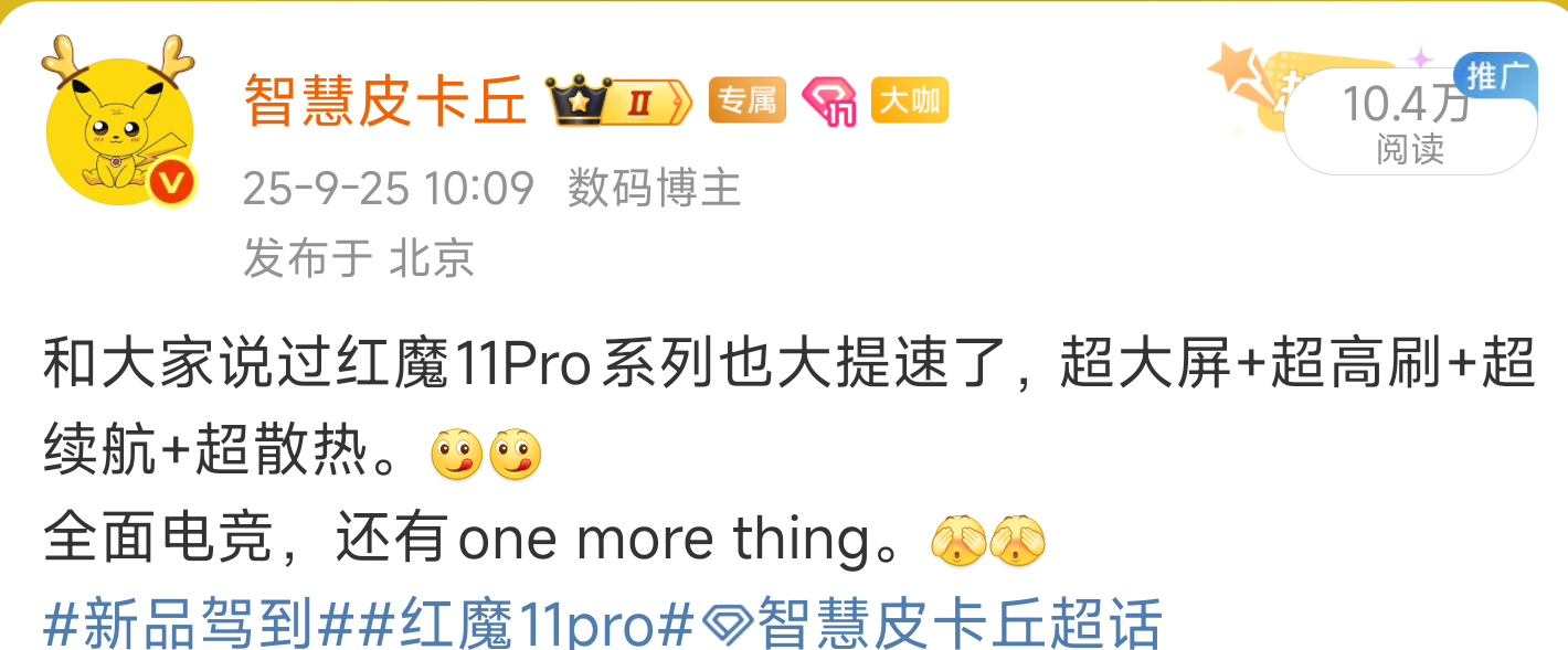 红魔11Pro新品驾到智慧皮卡丘[超话]