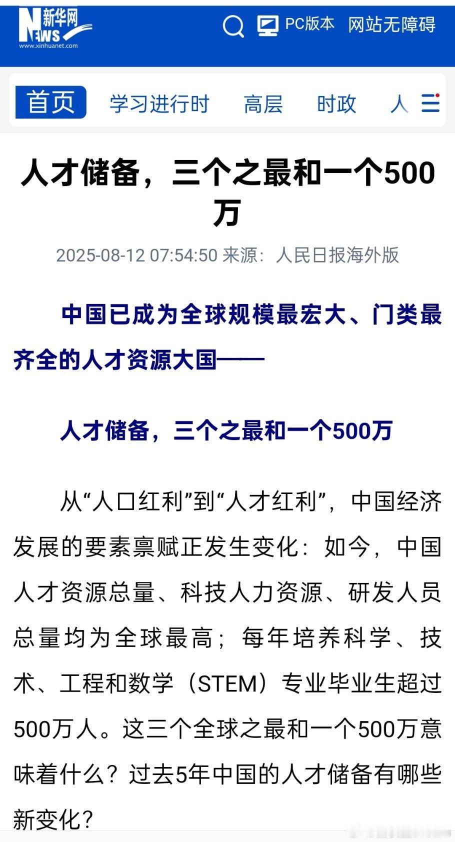 新华网:中国已成为全球规模最宏大、门类最齐全的人才资源大国。中国人才资源总量、科技人力资源、研发人员总量均为全球最高!