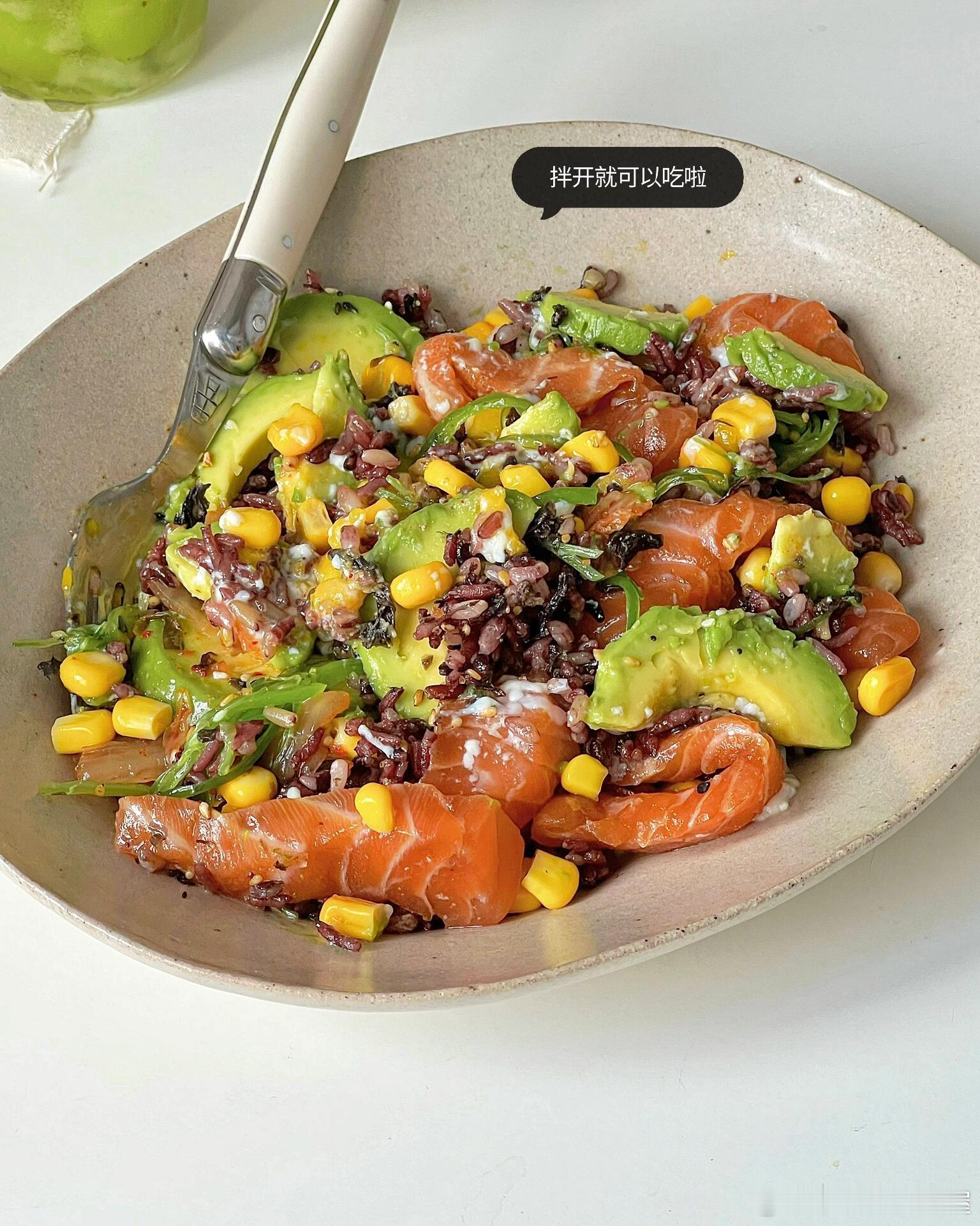 夏日轻食‼️低卡美味 | 三文鱼牛油果拌饭🥑