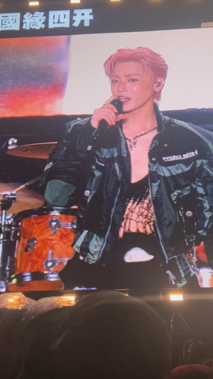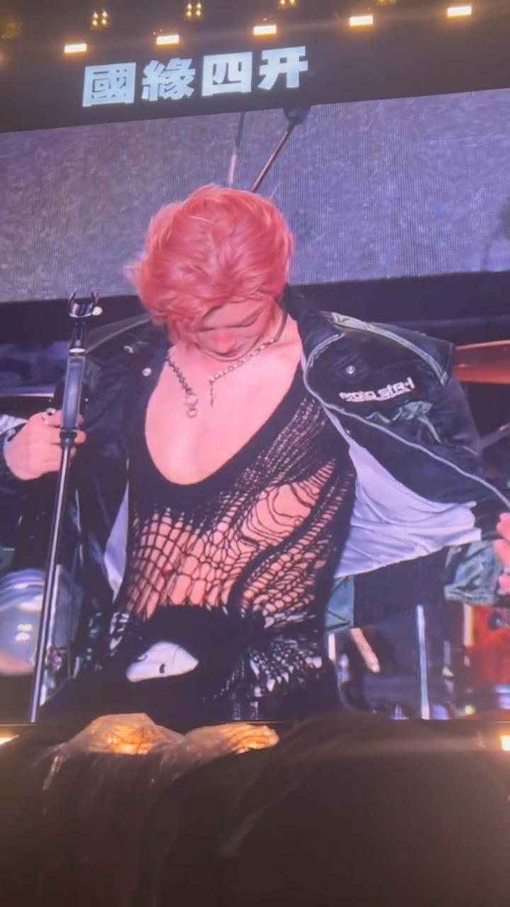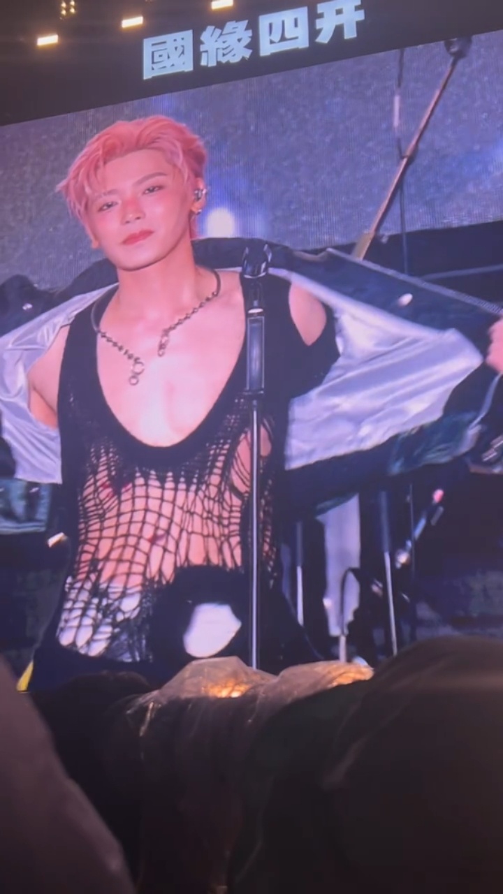 完全门面爱豆[爱慕]侯明昊粉发造型侯明昊镂空渔网内搭