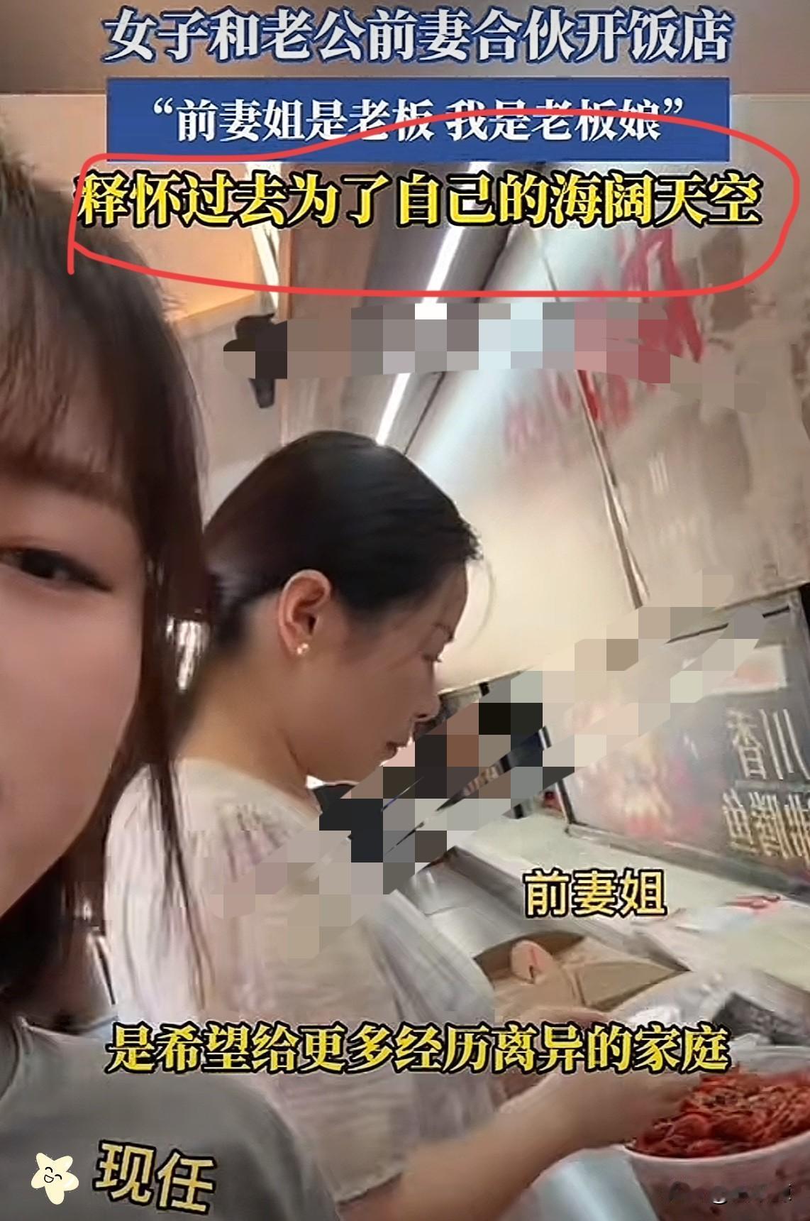 “太放得开了!” 浙江绍兴,一家小饭店里,丈夫的前妻,在后厨炖肉,现任妻子,则在前厅招呼客人,俩孩子一个是现任的儿子、一个是前妻的女儿,正趴在角落小桌一起写作业,写完还会蹦蹦跳跳地帮着递餐具! 这氛围哪有半分“互相提防”的影子,全是热热闹闹的烟火气! 当初现任张女士刚远嫁过来时,连菜市场门朝哪开都不知道,是前妻李女士主动伸了手! 大到帮着处理家里杂事,小到教她做地道本地菜,一来二去,俩人没成“情敌”,反倒成了能说心里话的闺蜜! 后来张女士和丈夫想开店,可俩人都没碰过餐饮,对着空店面犯愁时,张女士第一时间就想到了待业的李女士! 毕竟李女士之前在餐馆干过好几年,不仅懂后厨管理,红烧肉、酱鸭还是家传手艺! 就这么着,三人搭起了伙:李女士掌后厨,每天天不亮去挑新鲜食材,不少回头客就冲她这口味道来! 张女士嘴甜会来事,前厅服务、外卖运营、拍抖音宣传全拿下! 丈夫专管采购和后勤,凌晨跑市场比价,下午盯水电打扫,刻意避开“夹心人”尴尬! 更让人佩服的是钱的事儿,启动资金、技术入股、盈利分成算得明明白白,每月找第三方会计对账,账目表就贴在收银台,谁想看都能看! 一开始街坊邻居闲话不少,说“这男的太会算计”“张女士太傻”,可俩人压根没往心里去。李女士加班晚了,张女士提前留热饭! 张女士要接孩子,李女士就顶前厅的活儿。时间一长,看着饭店总热热闹闹,俩孩子手拉手进出,闲话慢慢就没了! 不搞虚的,不玩心眼,靠本事赚钱,凭真心相处,这样的日子,怎么能不红火?