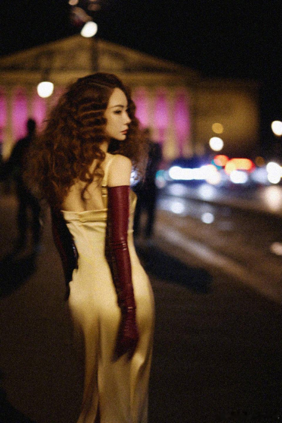 巴黎地铁偶遇戚薇路人偶遇的戚薇竟是在拍大片!复古卷发氛围感拉满,黄色吊带搭酒红