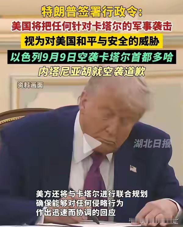 特朗普做出重要承诺,称袭击卡塔尔就是在威胁美国! 特朗普在9月29日签署行政令,承诺“保障卡塔尔安全”,升级对卡塔尔的安全承诺级别,把对卡塔尔的攻击视作对美国和平与安全的威胁,甚至威胁动用军事手段保护卡塔尔。 简单说就是,要是卡塔尔遭到武装攻击,美国就会把这攻击当成是对自己和平与安全的威胁,还可能会采取外交、经济甚至军事手段来保护卡塔尔呢。 其实啊,美国和卡塔尔早期的时候只是普普通通的伙伴关系。为啥呢?因为卡塔尔那时候体量小,美国根本没把它放在眼里,当时美国主要是通过沙特、科威特这些大国在中东建立战略影响。 不过,风水轮流转,到了1991年海湾战争的时候,美国突然发现,嘿,卡塔尔这地方虽然小,可位置却重要得很呐!它位于海湾的“咽喉”之处,能辐射整个中东地区。 要知道,霍尔木兹海峡可是世界上最重要的石油航道,全球大约20%的石油都要从这里经过呢,而卡塔尔就在霍尔木兹西边,一旦海峡局势紧张起来,美军在卡塔尔的军力就能直接介入,确保能源航道的安全。 种种因素叠加,让美国看到了卡塔尔位置的重要性,于是美国就在卡塔尔建立了乌代德空军基地,这可是美国在中东最大的空军基地哦。 时光流转到2017年海湾危机那时候,特朗普一开始可没站在卡塔尔这边,反而站在了对手沙特那边,那时候美卡关系可谈不上有多铁。但到了2020年以后,情况就不一样啦。 卡塔尔首都多哈成为了美国和塔利班的谈判地点,拜登在位时期,美国从阿富汗撤军,卡塔尔也提供了大量帮助,美卡关系这才正式升级。那特朗普为啥要签署这个行政令呢?这里面可是有原因的。 原来是因为以色列空袭多哈造成了卡塔尔官员死亡,美国督促以色列给卡塔尔道歉,这一下就拉近了和卡塔尔的关系,特朗普这是趁热打铁,让两国关系变得更紧密呢。 而且啊,以色列总理前两天在联合国的言论那可真是“无法无天”,完全不在乎给美国带来的负面影响,所以特朗普的这个声明也很有可能是为了震慑以色列,维护美国自身的形象和利益。 不过呢,大家可别被这行政令给完全“忽悠”了。要知道,这只是特朗普的行政令,按照美国法律,它虽然在行政层面对美国政府有约束力,但是行政令可不能修改法律,也不能超越国会赋予总统的权限。 所以说,特朗普对卡塔尔的这个承诺,更像是口头承诺,没有法律约束力,到最后很有可能就沦为“空头支票”啦。总之啊,国际关系就是这么复杂多变。 特朗普签署的这个行政令到底会带来怎样的影响,咱们还是得拭目以待,看它到底是“真金白银”的承诺,还是只是一场“镜花水月”的戏码。毕竟,在国际舞台上,没有永远的朋友,也没有永远的敌人,只有永恒的利益啊!