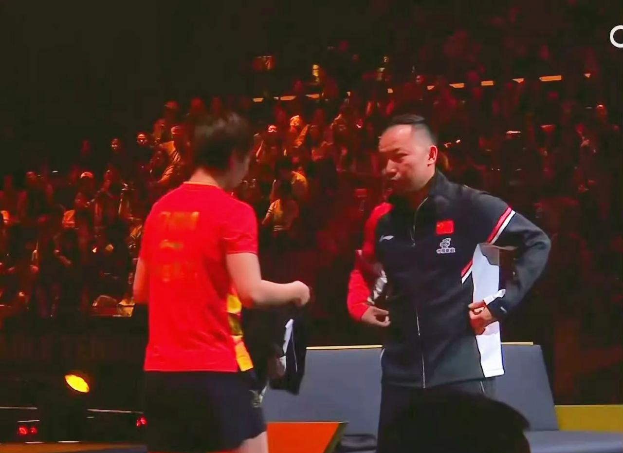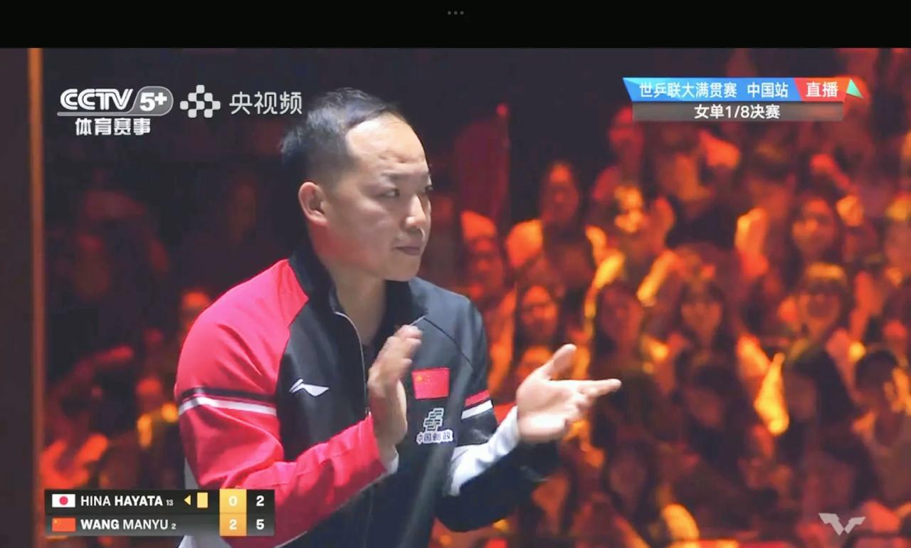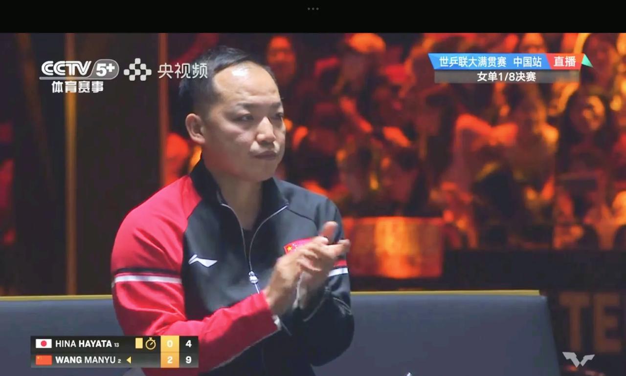 10月02日,王曼昱对阵早田希娜比赛的场外教练,继续是任浩,虽然年轻,只有30岁