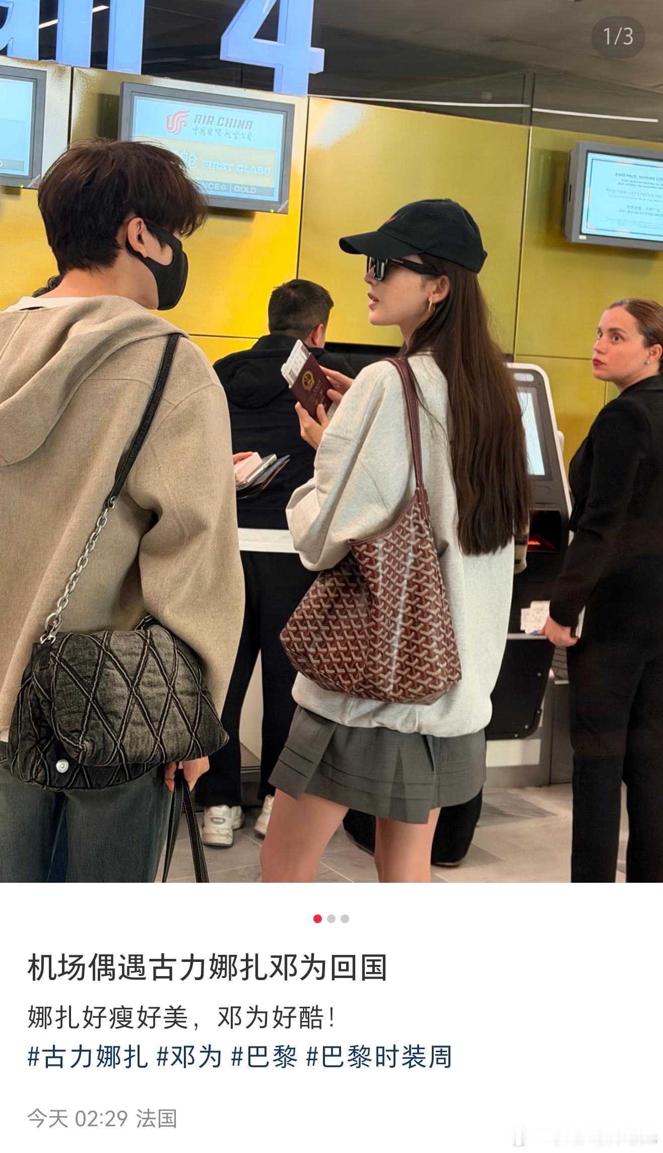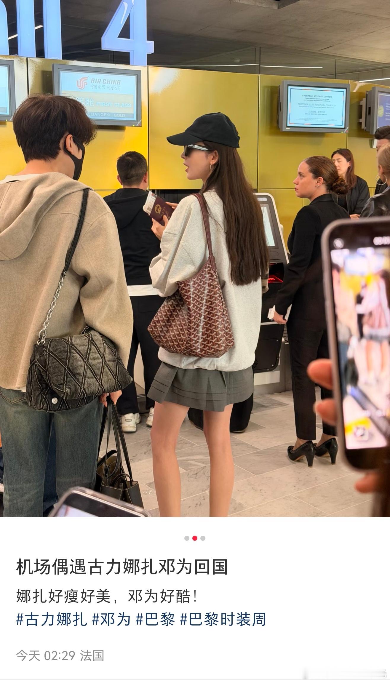 这个网友是啥运气,竟然在机场偶遇古力娜扎和邓为,两人参加完时装周准备回国了。