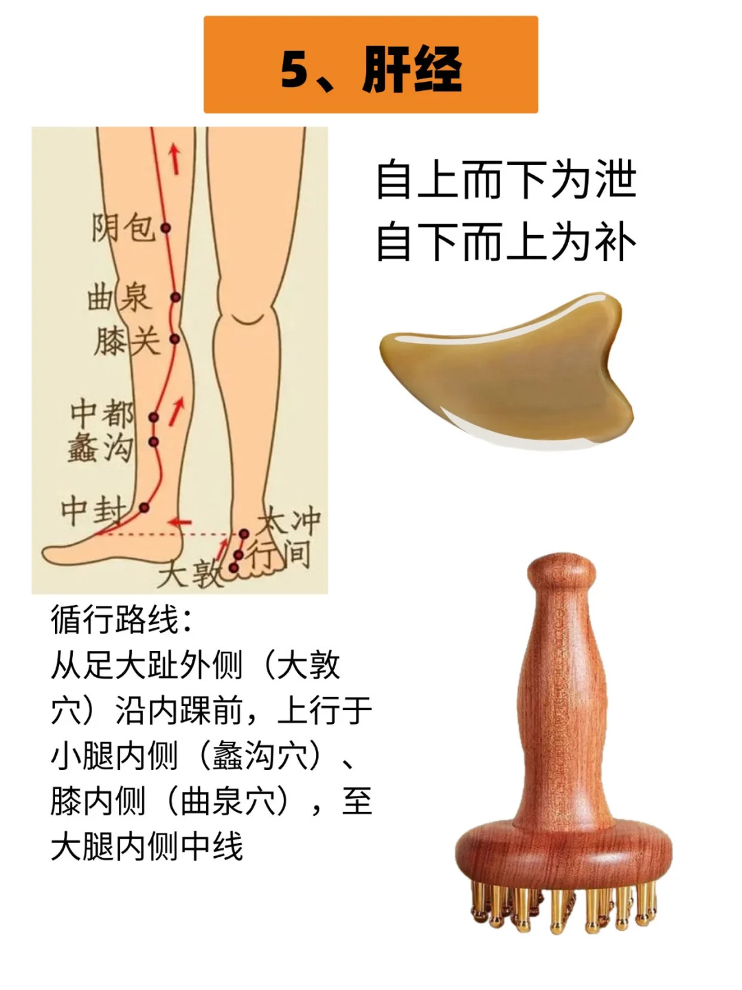 循行路线:从足大趾外侧(大敦穴)沿内踝前,上行于小腿内侧(蠡沟穴)、膝内侧(曲泉穴),至大腿内侧中线