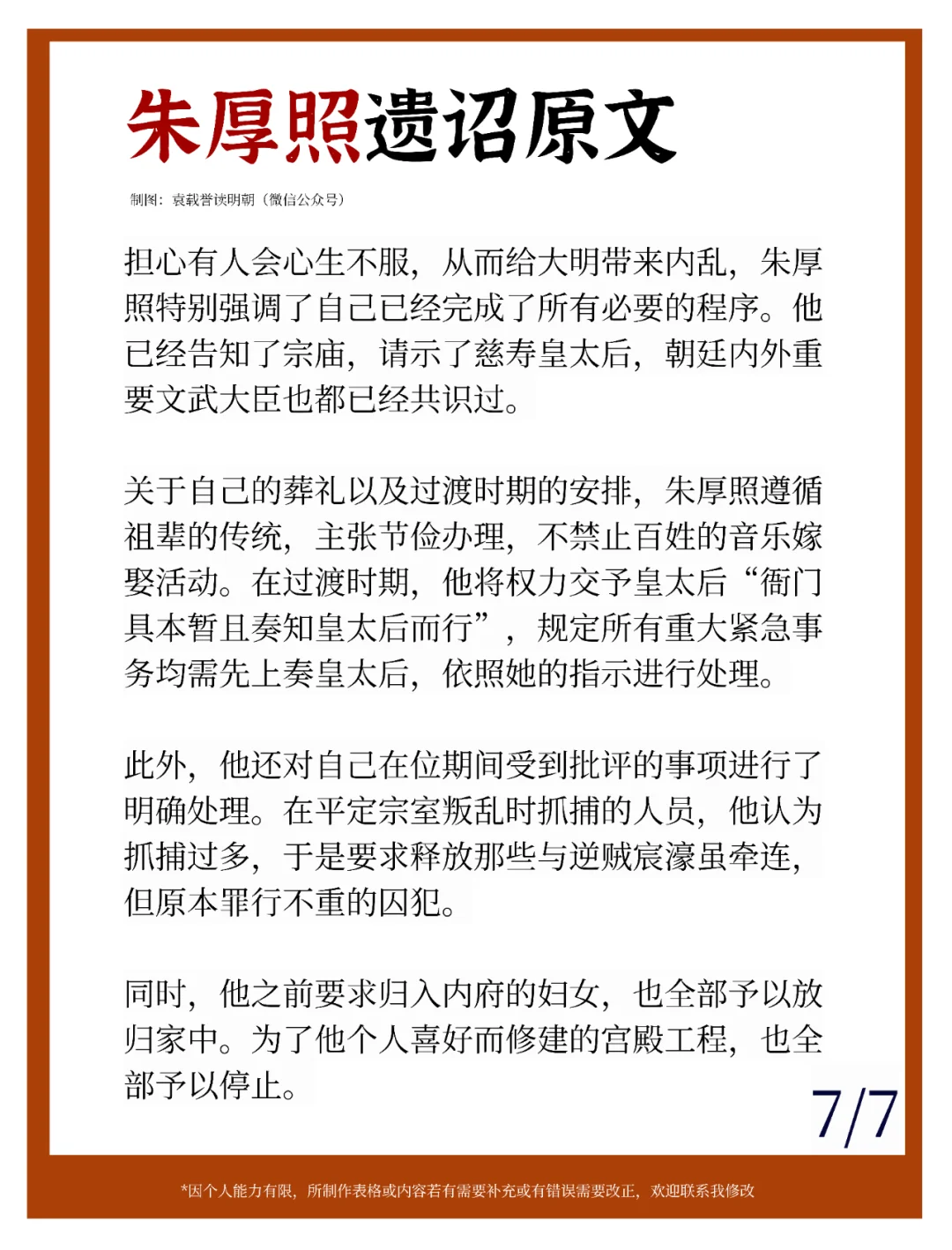 关于自己的葬礼以及过渡时期的安排,朱厚照遵循祖辈的传统,主张节俭办理,不禁止百姓的音乐嫁娶活动。