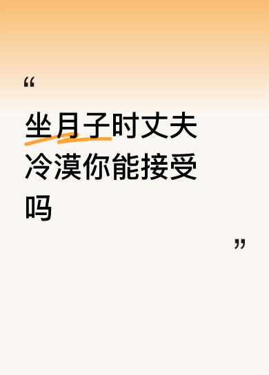 坐月子时丈夫冷漠你能接受吗有些事情能忍就忍,不能忍就离呗,这样的事情各人看法不一样吧!你一气离婚了,不能不找吧,你带个孩子到别的家庭,这孩子人会比这个亲爸爸,奶奶痛吗?再说了,有的破腹产真的不能吃鱼呀!吃了会发炎,医生就是让喝粥呀!