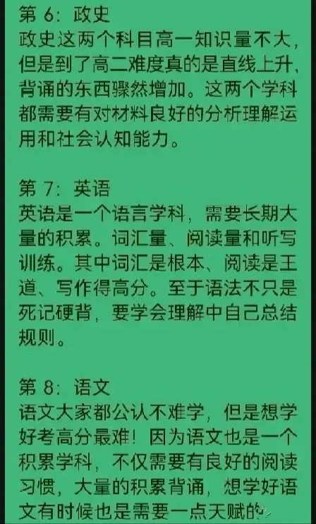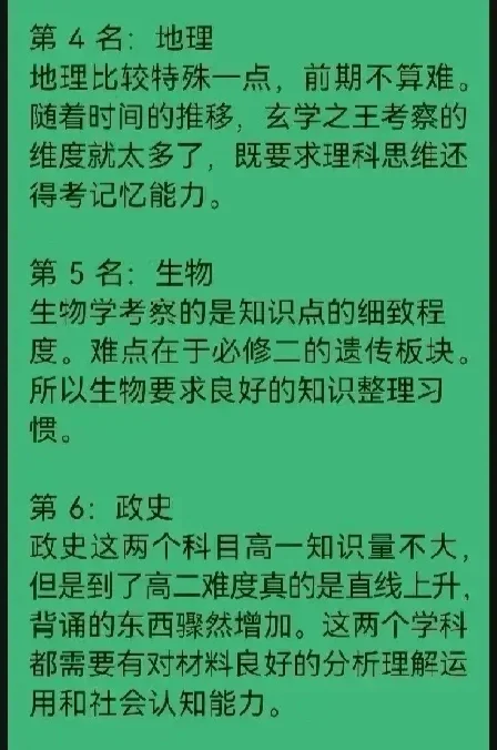 高中最难的是政治,简直是天书;其次是英语,背单词太难了,最怕死记硬背的东西。物理化学最简单,有逻辑性,只要原理弄懂了,一通百通。这一看是一位典型的理科生,那文科生怎么说呢?