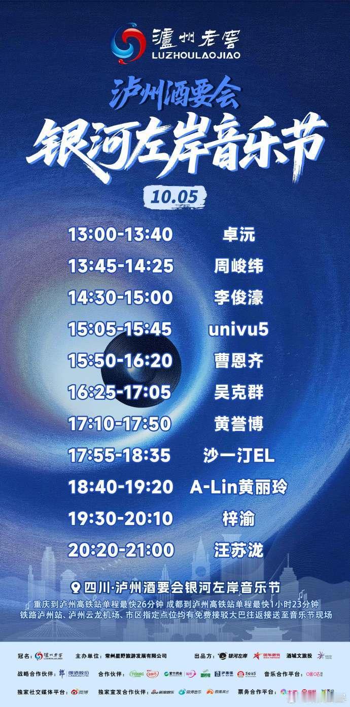 据悉,10月5日至7日,“泸州酒要会·银河左岸音乐节”将在四川省原泸州蓝田机场举行。期间阵容有汪苏泷、梓渝、Alin黄丽玲、新裤子、曾舜晞、XG、薛之谦等。