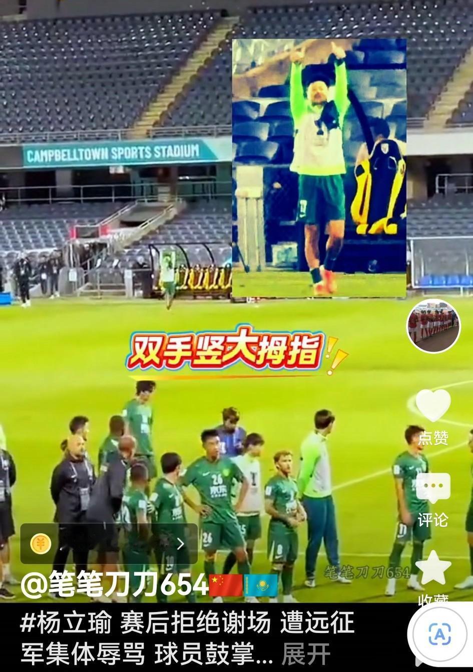 搞不懂杨立渝1分钟都未踢也被国安球迷远征军骂是为什么?更搞不懂他向球迷鼓掌和点赞动作为什么被人理解为对球迷的侮辱? 输球谁都很难受,球迷坐十多个小时飞机看到这么输球确实很憋屈,球员被骂几句但只要在足球用语范围的话倒也没什么,发泄一下事也就过去。 只是不理解球迷把矛头也对着杨立渝,毕竟他没机会上场拼搏并非他的错,他先行离开可能是心里充满委屈。但回头鼓掌和点赞,我认为他是自感没谢完场就离开不妥,故而向球迷示好以弥补。所以杨立渝的行为真不该也没必要乱球解读。