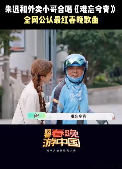 朱迅和外卖小哥合唱难忘今宵 跟着春晚游中国 朱迅与外卖小哥合唱《难忘今宵》,旋律一起,除夕夜的家的温馨、年夜饭的香气便弥漫开来。快解锁春晚动人回忆!
