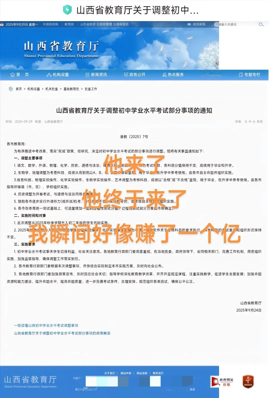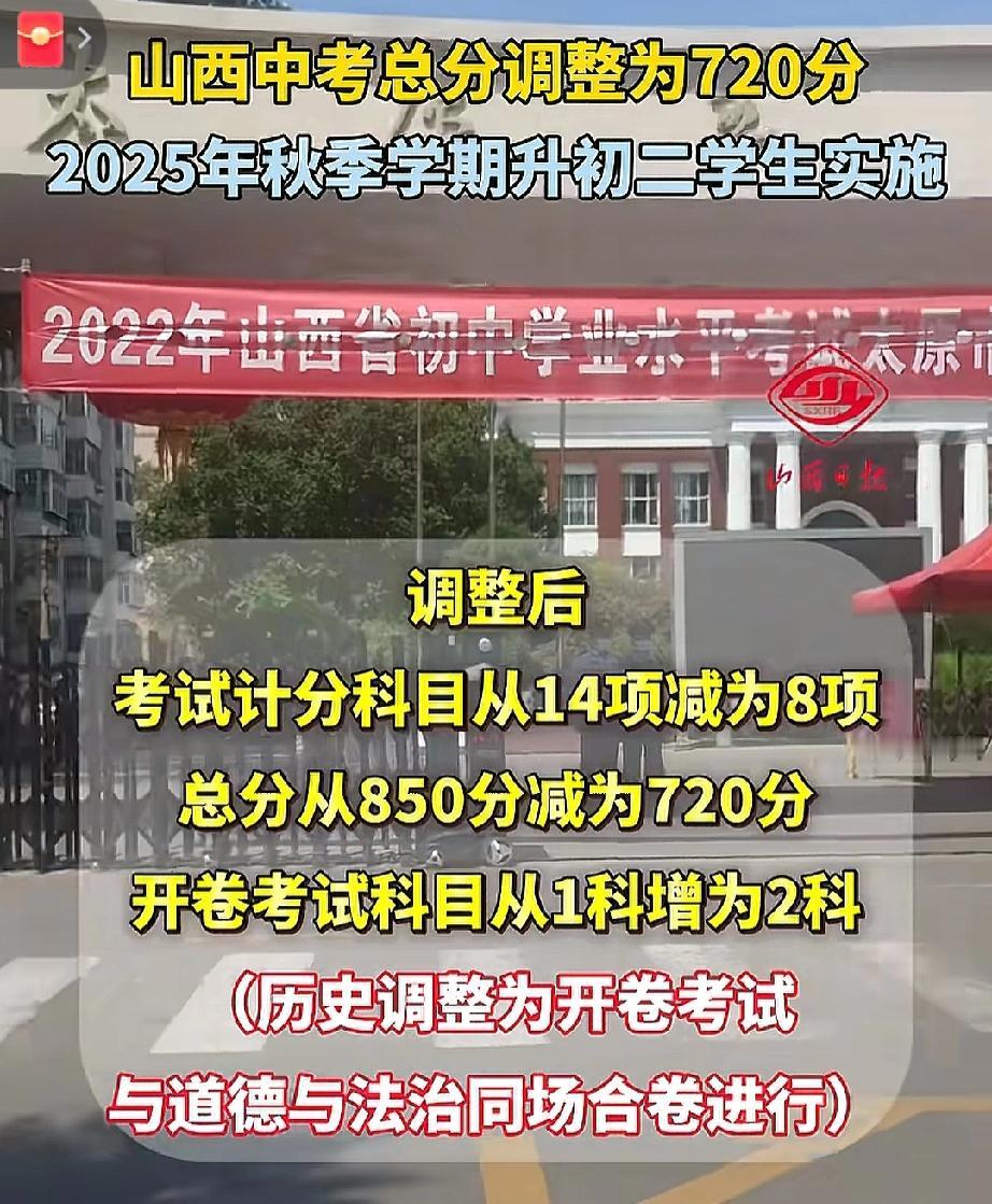 中考将历史列为开卷考试 当中考的总分850分时,700分都不算高,今年十堰的三大高的录取分数线都达到了720多分。多数家长为此担心时,山西的教育改革已经给初二的学生按下了重启键,将中考总分再减130分,让中考总分重回720分。 为啥山西的中考要进行改革?说到底还是那些唯分数论、催生计划的过度竞争,把大家急到了墙角。以前山西中考的的计分科目达到了14项,体育和实验操作也计入总分,有时家长和孩子为了那一分,穿梭于各个补习班。同时学校为了提升升学率,压缩孩子的课后,使学生的书包越来越来沉重,眼里只有分数了,失去了学习本来的乐趣。 估计有关部门看到了相关的弊端,于是把历史列为开卷考试。此举也许是想告诉大家,中考从来不是硬背的,而是综合素养试炼场。这场改革并不是纸上谈兵,调整后科目从14门调整到8门,总分从850分下降到720分,同时历史和道法将合卷进行开卷考试。对于即将升入初二的孩子来说,后面对于科目的权重性就的好好拿捏了。 家长不要过于轻松了,虽然说是开卷考试,但对于孩子的考察难度肯定会升级。学生们得从背答案转移到知识的运用能力,比如做历史试卷时,要学着用不同的历史资料来佐证观点,这比硬背有用的多;孩子们以后可以少些机械刷题,多些对历史的辩解和社会的观察。总分变了,各高中的录取分数线必然会进行调整,各位家长和孩子得提前研究目标高中往年的录取趋势,未雨绸缪总是没错的。 头条的家人们,我们不妨把这场改革当成一个契机,让我们一起跳出分数怪圈,和孩子一起聊聊历史事件,谈谈在道法里出现的社会现象,说明可以增加一些亲子交流的机会。 各位家长们,你们觉得此举是在给学生减负还是换了一个方式“卷”呢? 九年级历史提分 初中历史提分 初中历史考试 道法中考冲刺 中考开卷 道法中考 湖北中考道法 深圳教育局:高三实施双休 初中开卷题 中考历史新题型 道法开卷考 中考历史跨学科 中考生历史 中考道法考试 中考开卷宝典 中考道法选择题九年级历史提分 初中历史提分 初中历史考试 道法中考冲刺 中考开卷 道法中考 中考历史新题型