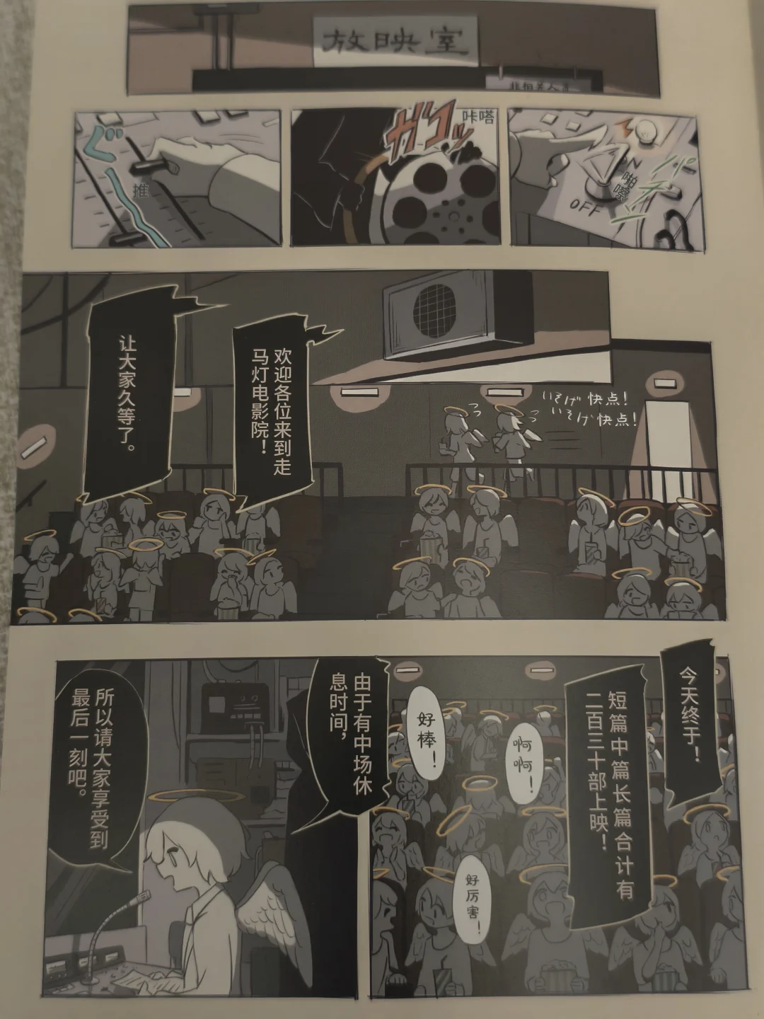 阿伏伽德六的《上映》像一把温柔的手术刀。天使们在影院翘脚等待“人生电影”开场,而死者的记忆碎片成了荧幕上的蒙太奇:被撕碎的试卷、被砸碎的杯子、杂乱的房间…那些东亚小孩秘而不宣的生长痛,在冷色调画面里凝成冰棱,刺进每个观众的视网膜。