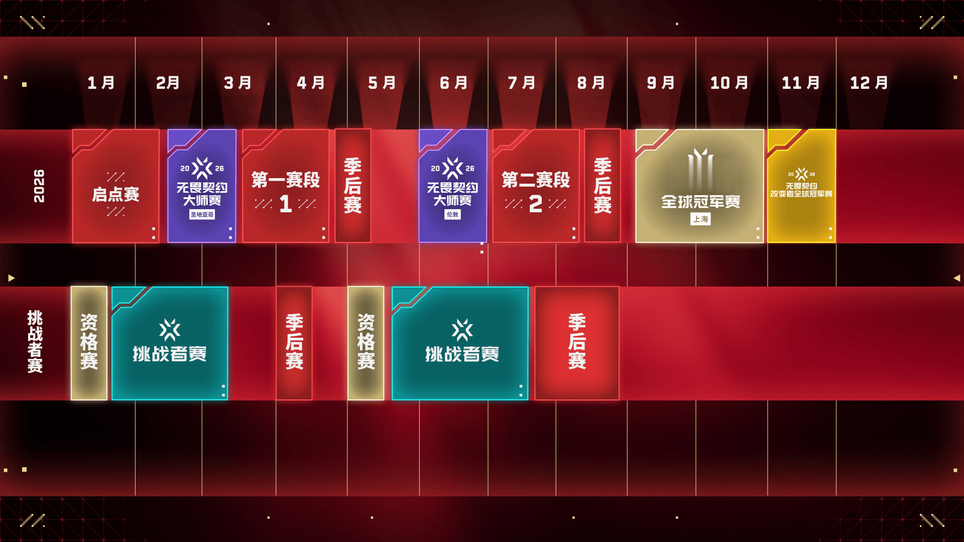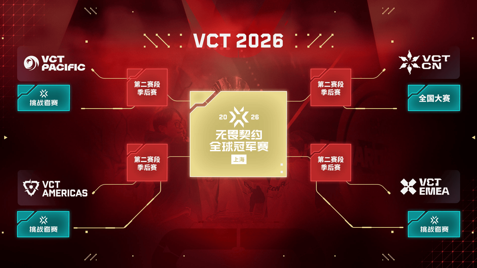 2026年,VCT全球赛事和常规赛将迎来调整,让比赛更激烈、赛程更丰富。从启点赛到国际联赛,从大师赛到全球冠军赛,每一阶段都将焕然一新。