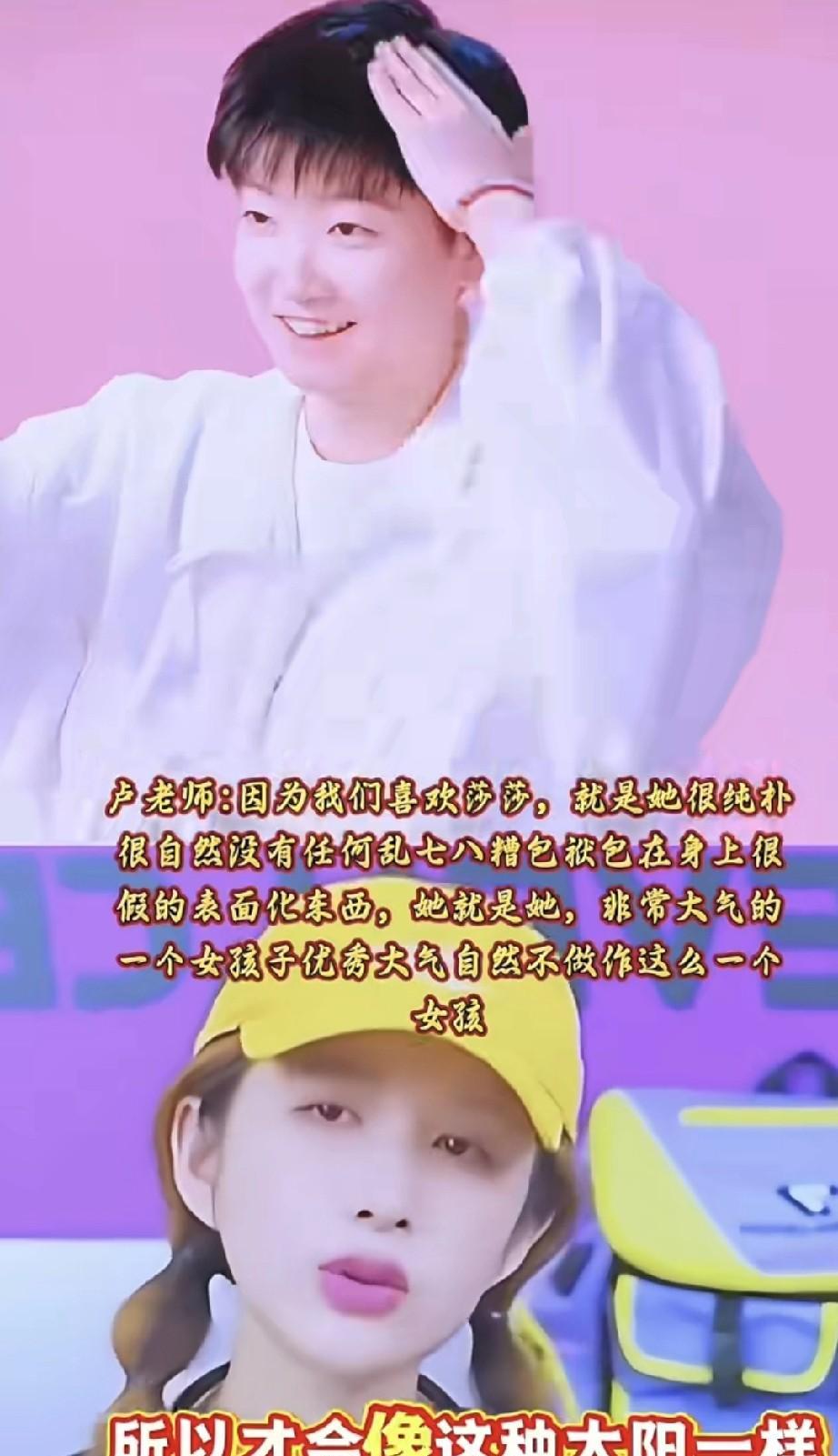 大头师娘太会说了, 这段话说到了莎莎球迷心坎里! 她说:我们喜欢莎莎,就是因为她很纯朴,很自然。没有任何乱七八糟的包袱在身上,很假表面化的东西,她就是她,非常大气的一个女孩,优秀、大气、自然、不做作,这么一个女孩。纯粹,所以她会像这种太阳一样! 总结得非常精辟,她真的太真实了,所以才被人喜欢着!