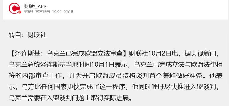 乌克兰总统宣布,进入欧盟有进展了! 10月2日,乌克兰总统泽连斯基公开表示,乌克兰已经完成了内部审查,把自己的法律调整到和欧盟法律相符的状态,而且做好了开启入盟谈判第一个关键环节的准备。 其实,早在2022年6月,乌克兰就拿到了欧盟候选国的身份,这已经是入盟路上很关键的一步了。这次准备好的第一个谈判环节,主要就是围绕欧盟最看重的几个方面:比如能不能保证法治、怎么打击腐败、还有司法系统怎么改革得更公正透明。 为了达到这些要求,乌克兰最近几年没少下功夫,不仅把相关的法律法规一条条改到位,还专门加强了反腐败机构的力量,就是想让司法系统更独立、更公开,这些都是欧盟在谈判刚开始时就明确要求的基本条件。 欧盟那边对此也给出了积极的回应,欧盟委员会主席冯德莱恩之前就说过,乌克兰的改革情况是入盟谈判的关键,欧盟会一直关注,也会给必要的支持。 不过问题也不是没有,欧盟内部对谈判的节奏看法并不一致,有些成员国就特别强调,乌克兰的改革必须是真真切切、能长期坚持的,不能只是表面功夫。 毕竟加入欧盟的谈判本来就是个又复杂又耗时间的事,现在第一个环节准备好,也只是具备了启动正式谈判的前提,后面的路还长着呢。 说起来,欧盟的入盟谈判总共分成6个大的环节,也就是所谓的“谈判集群”,涵盖了经济、能源、环境这些方方面面的内容。现在只是搞定了第一个,虽然值得乌克兰高兴,但后面还有五个环节等着去突破。 而且每个环节都得乌克兰和欧盟坐下来仔细商量,乌克兰做的每一项改革,都要经过欧盟的严格检查。更麻烦的是,按照欧盟现行规则,每个环节都得27个成员国一致同意才能推进,之前匈牙利就因为不同意,给乌克兰的入盟进程添了不少阻碍,所以乌克兰根本不能松劲。 好在欧盟并不是北约,不是军事联盟,因此俄罗斯方面给乌克兰的压力可以说几乎没有,在俄乌冲突处于劣势的大背景下,这对泽连斯基来说算得上是难得的好消息了。