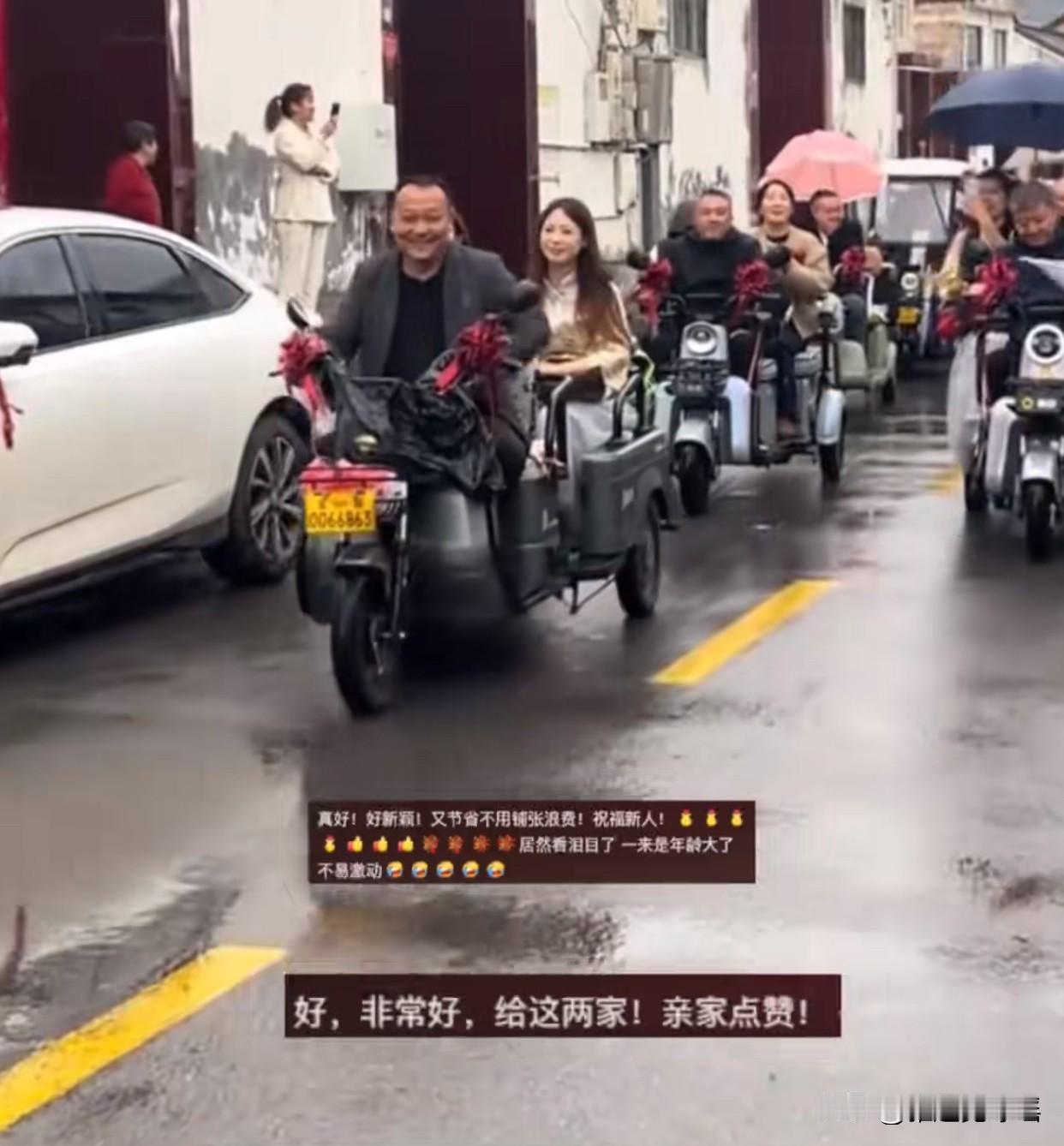“真是羡慕了!”河南有一对新人结婚时用了三轮车队接亲,两家离得特别近,就隔着一条街。这么办既省钱环保,又特别热闹!新娘说“我的婚礼我做主”,我觉得她真想得开。 小伙子一开始还觉得这样太简单,怕委屈了女朋友。不过后来被说服了,提前找亲戚朋友借了二三十辆三轮车。接亲那天,车队成了全村最抢眼的风景,又热闹又亲切。说实话,现在的年轻人就喜欢这种轻松自在的仪式感。 要我说,婚礼办得豪华不豪华,跟以后幸不幸福真的没关系。他们这样既省钱过日子,又懂得体贴父母,多懂事啊!日子是自己在过的,不是摆给别人看的。这种简单却用心的婚礼,反而更能看出两个人的感情。我觉得现在越来越多的年轻人已经不在乎那些表面功夫了,真心对待彼此,比什么排场都重要。