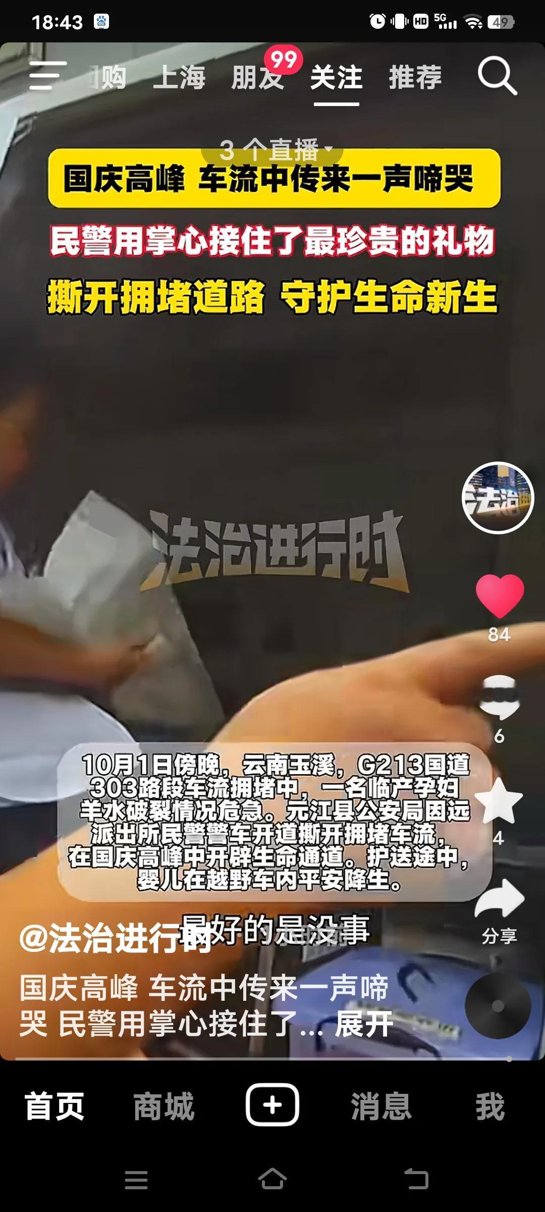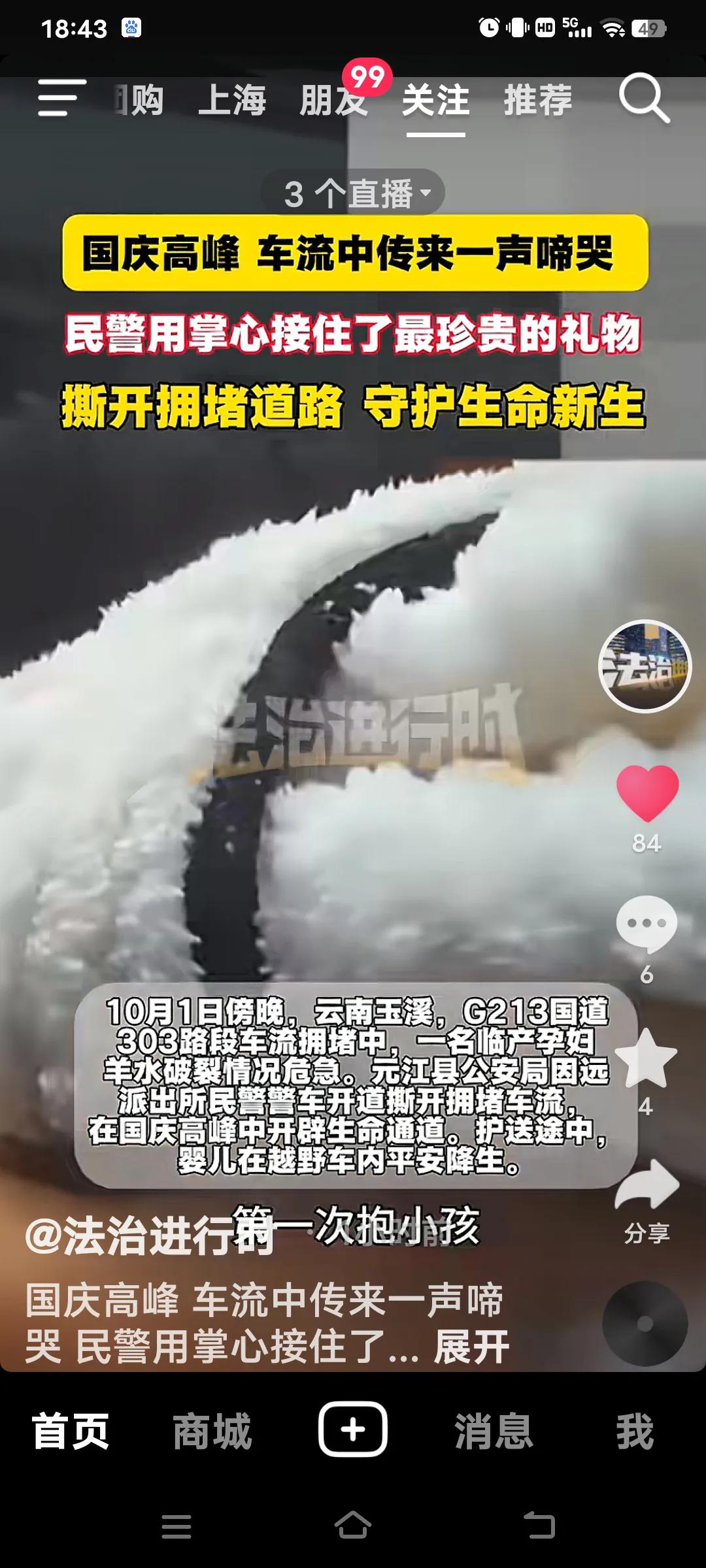 国庆期间车流量大,道路拥堵是常有的事。但在云南玉溪G213国道303路段,却发生了一件暖心的事。10月1日傍晚,一名临产孕妇羊水破裂,情况十分危急。元江县公安局因远派出所的民警迅速出动,开着警车在拥堵的车流中撕开一条生命通道。 在护送途中,婴儿在越野车内平安降生。当孩子父亲哽咽着将新生儿递过来时,民警用掌心接住了这份最珍贵的礼物。他们一边守护着新生命,一边与医护人员实时沟通。最终,母子平安。在这个举国欢庆的日子里,民警用藏蓝守护为国庆增添了一抹最暖的底色。 秋日生活打卡季