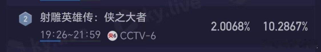 射雕英雄传侠之大者收视率肖战版射雕实时收视破2射雕英雄传侠之大者收视率破2,好棒,[鼓掌]