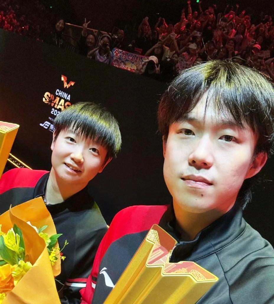 不容易呀, 莎头组合获得北京大满贯混双冠军, 竟然不到一分钟就上热搜了。 球迷们纷纷调侃, 八年真不是白给的, 莎头组合简直就是“混双老祖”。 他们轻易不出“山”, 半年出来打击一圈, 平时根本不用练, 他们出战打击范围覆盖全球。 这是属于他们的第五个大满贯混双冠军, 恭喜莎头组合2000积分到手。 还真是应了那句话, “半年不开张,开张吃半年。” 今天自拍是王楚钦拿手机拍的, 估计是奖杯太重了。 恭喜莎头组合, 再一次捧起了属于他们的奖杯。 (图片源自于网络) #秋日生活打卡季#