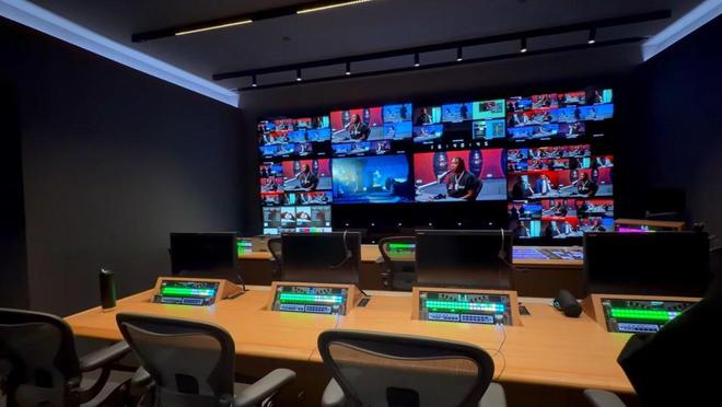 大楼内还拥有两间顶尖的电台录音室,可随意转换为直播间、播客间、访谈空间或小型表演舞台,整体设计极具未来感,中间是一张摆满电台设备的桌子,前方则是一张大沙发,对面整面墙都是超高分辨率的显示屏,内部安装了多台摄影机,可从不同角度录制节目,制作水准“堪比好莱坞”。