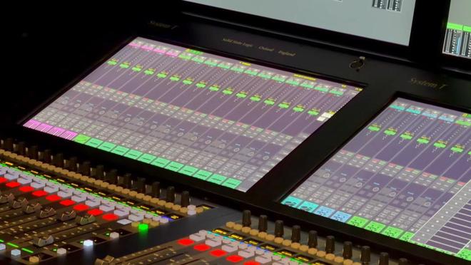 最令人惊叹的还是空间音频混音室,里面配有9.2.4PMC扬声器系统,可让人仿佛置身在音乐之中,整套系统由两台苹果芯片的MacPro台式电脑驱动,同时可以看到混音台采用了“混合设计”,上半部分是屏幕显示出的虚拟音频条,下半部分则是真实的推子。
