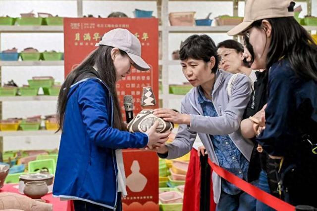 游客的积极参与让古老的遗址“活”了起来。在“水拓丝巾体验”区,缤纷的颜料在水面绽放,再转印到丝巾上,重现古代印染技艺;“宝藏流沙画DIY”则让参与者在创作中感受考古的乐趣,吸引了众多到场的小观众。“能在丝绸的起源地亲手体验水拓丝巾技艺,这种感觉太奇妙了!”看着孩子兴致勃勃地参与活动,游客李女士十分高兴地说。