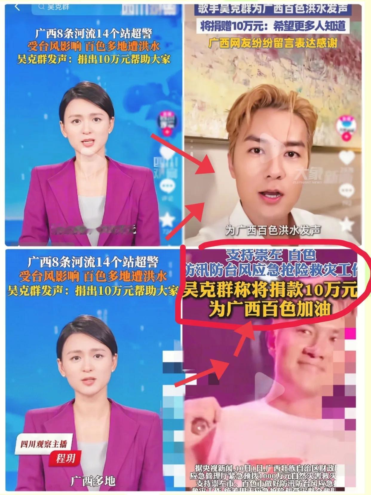 根据媒体报道,歌手吴克群为广西百色洪灾发声并加油!并且为百色捐款10万。 谁能